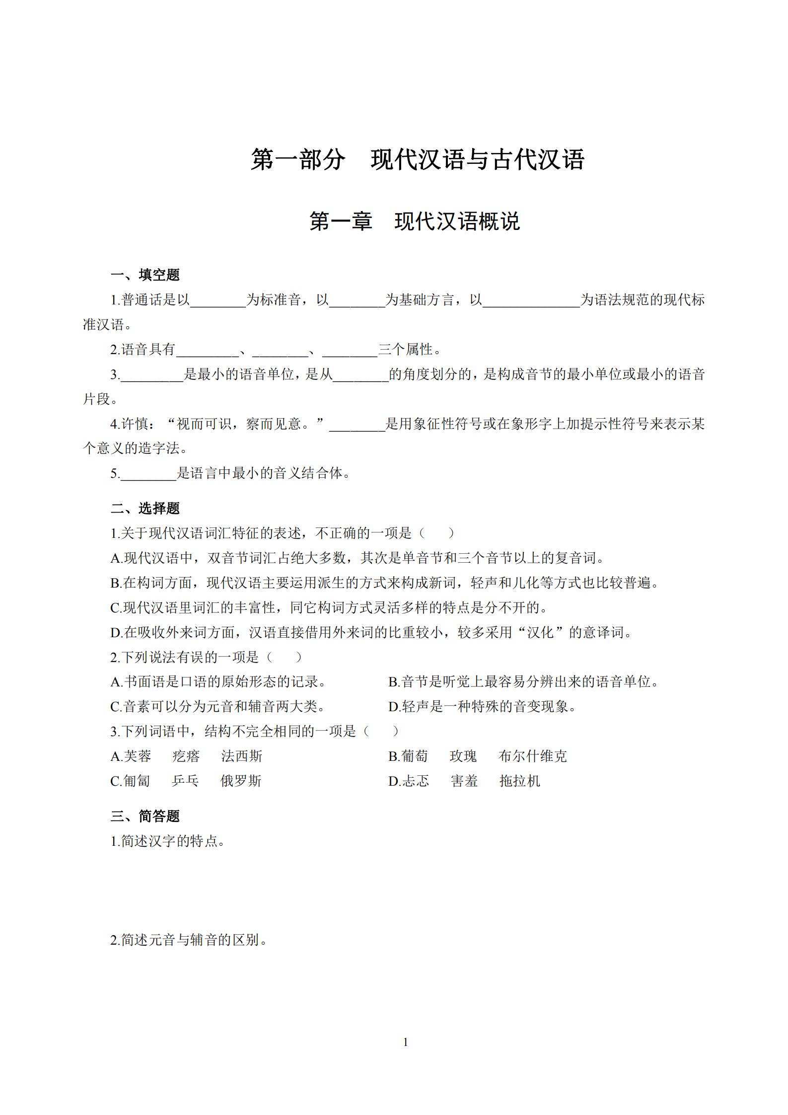 语文专业知识1000题带解析