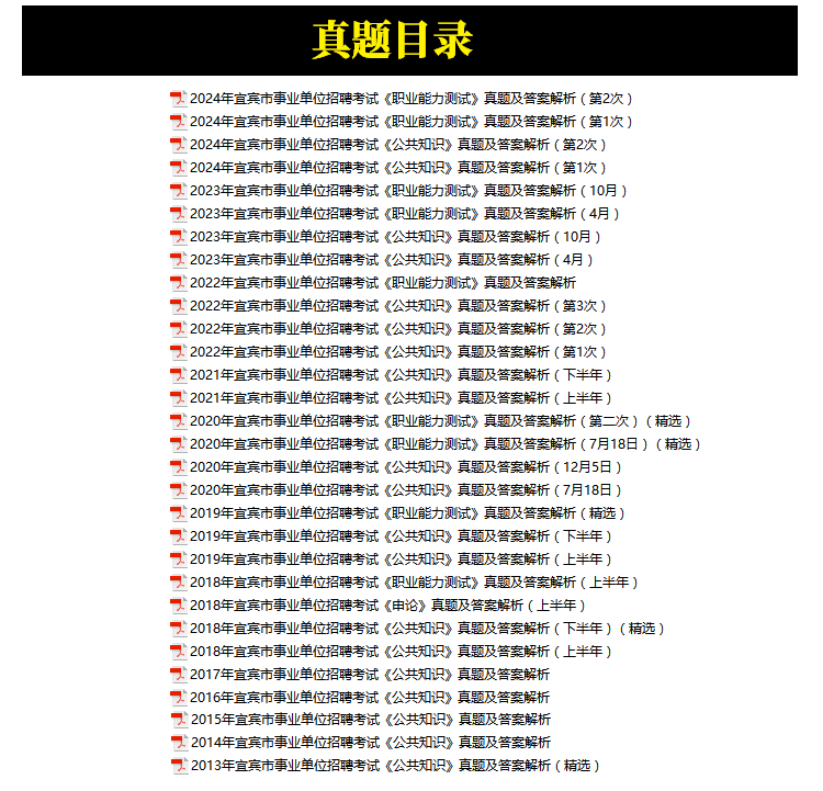 2013年-2024年宜宾市事业单位招聘考试笔试真题30套(详细年份见目录)