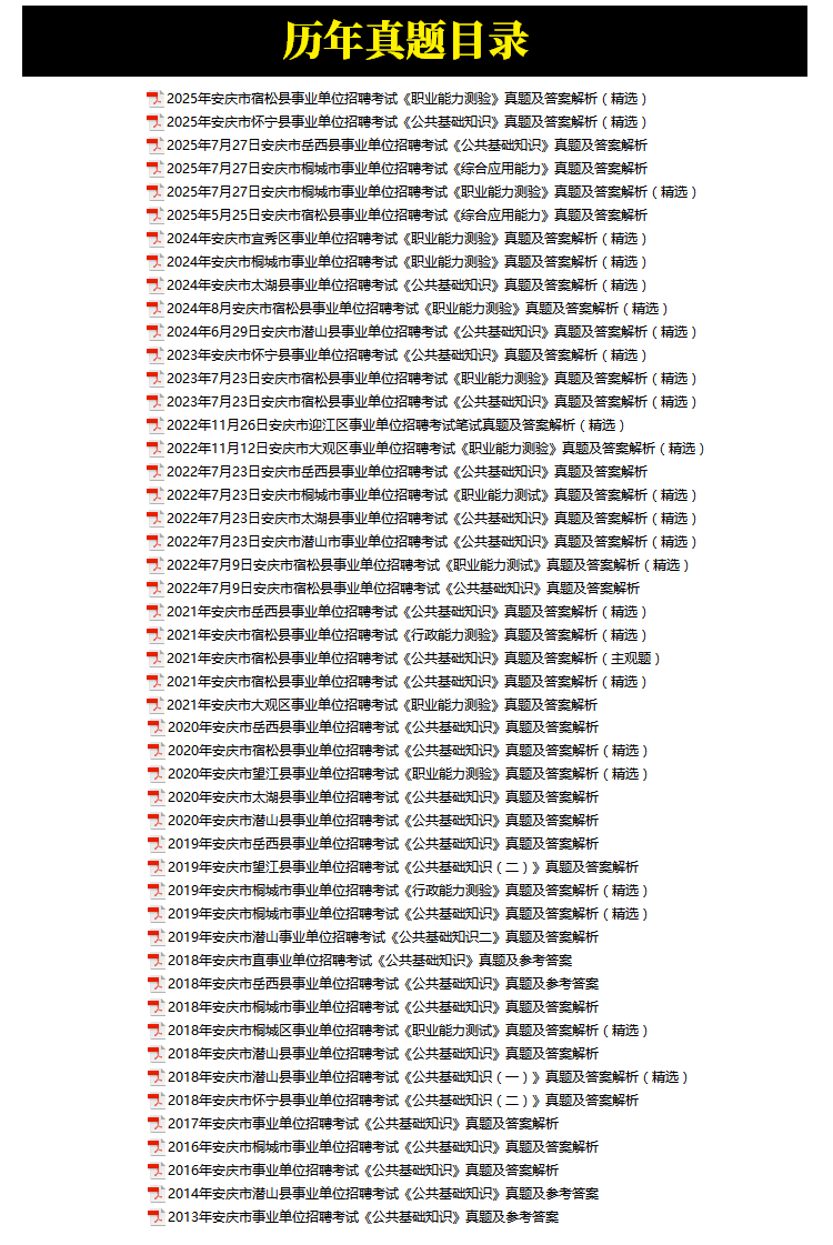 2013年-2025年安庆市事业单位招聘考试笔试真题49套