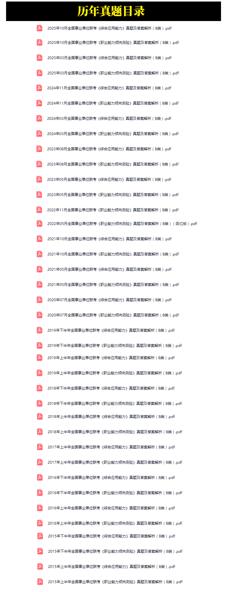 2015年-2025年全国事业单位联考笔试历年真题B类41套(持续更新)