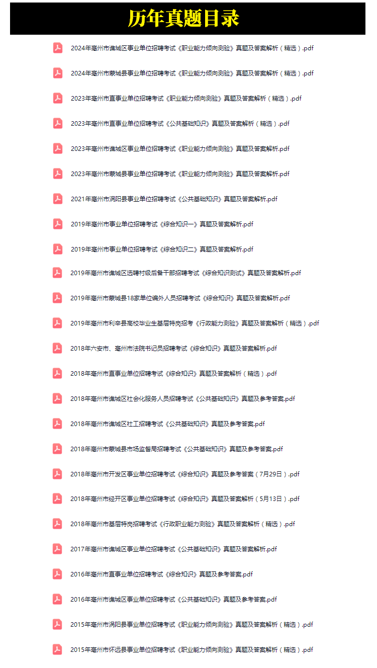 2015年-2024年亳州市事业单位招聘考试笔试真题25套