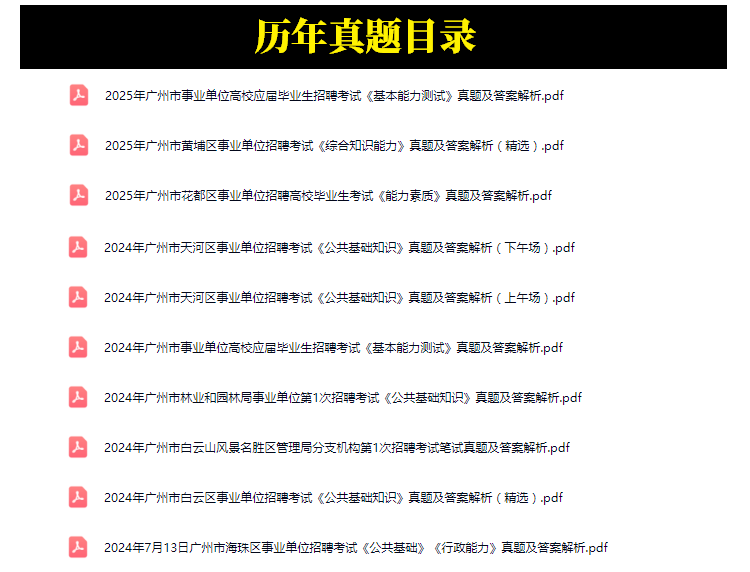 2015年-2025年广州市事业单位招聘考试笔试历年真题85套(持续更新)