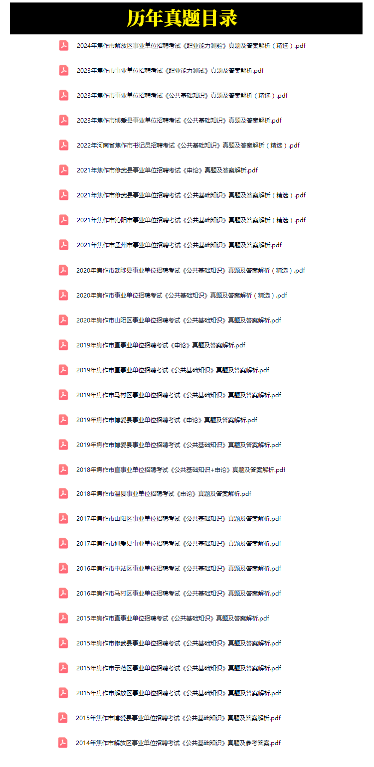 2014年-2024年焦作市事业单位招聘考试笔试历年真题28套