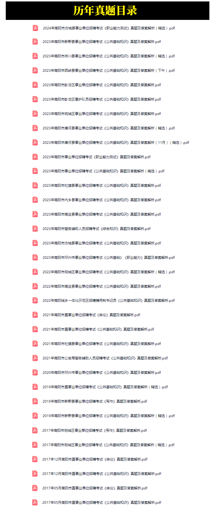 2017年-2024年南阳市事业单位招聘考试笔试历年真题29套(持续更新)