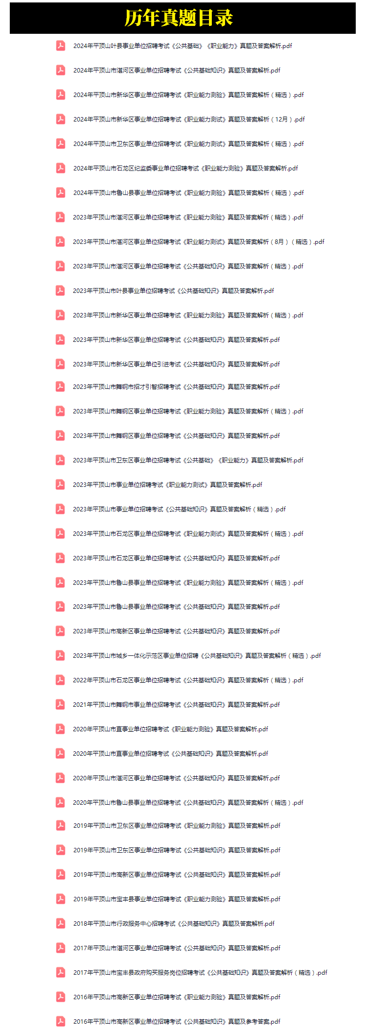 2016年-2024年平顶山市事业单位招聘考试笔试历年真题41套