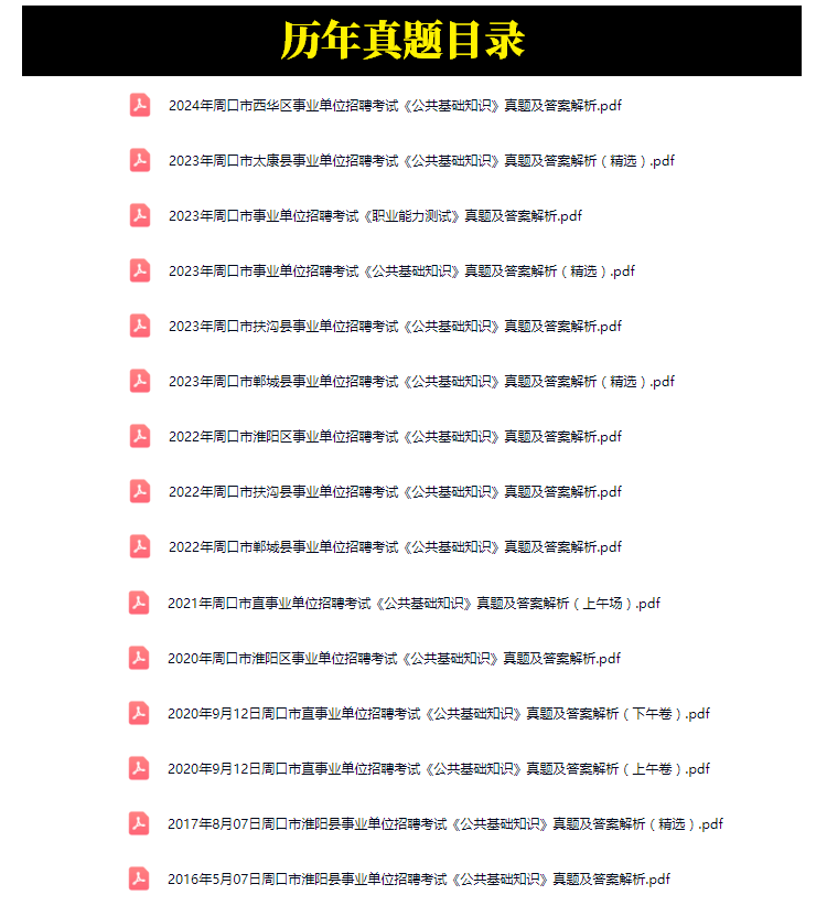2016年-2024年周口市事业单位招聘考试笔试真题15套