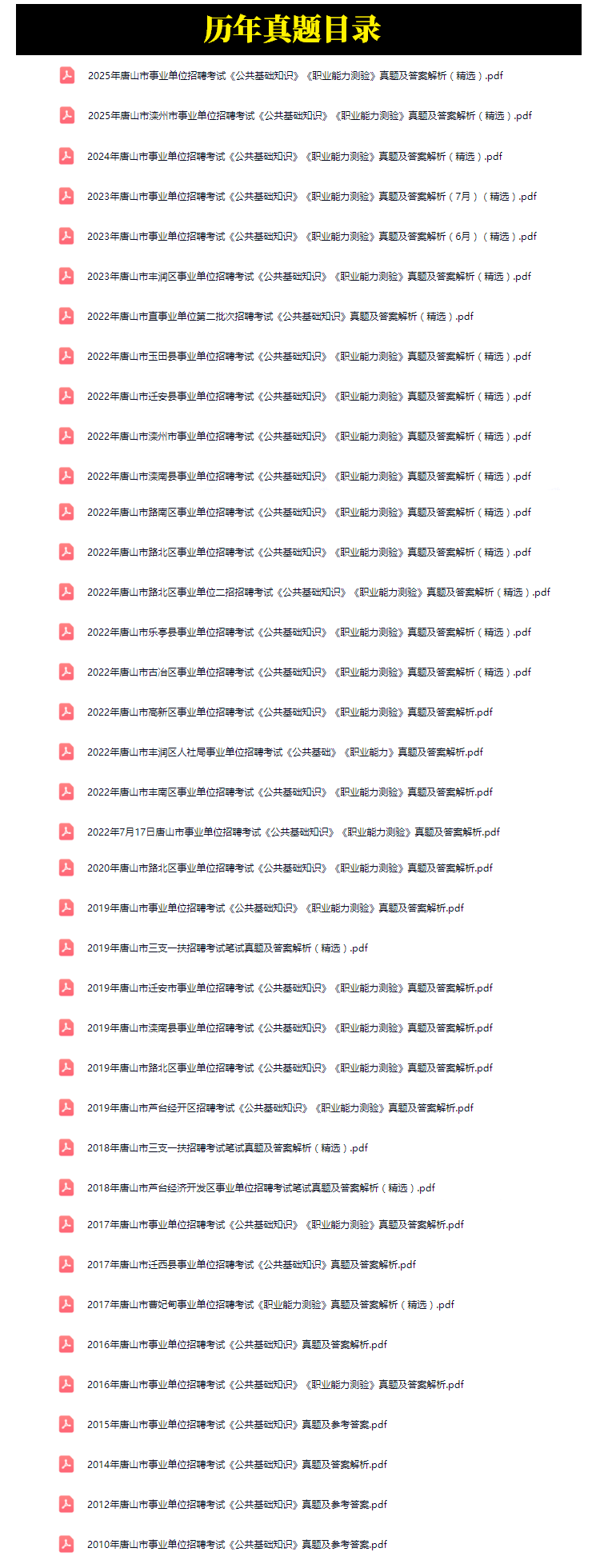 2010年-2025年唐山市事业单位招聘考试笔试历年真题37套