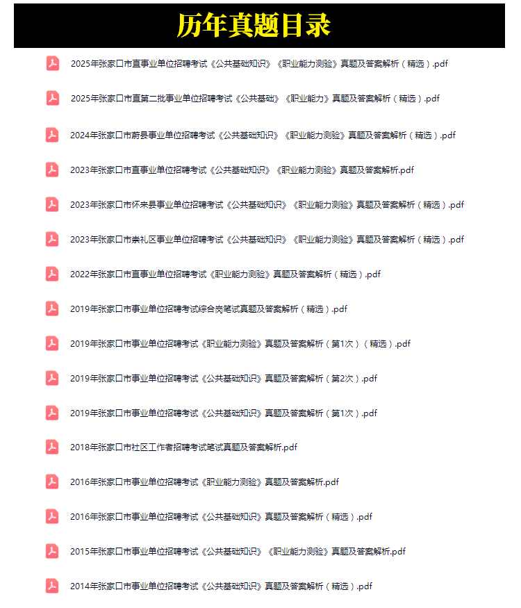2014年-2025年张家口市事业单位招聘考试笔试真题15套