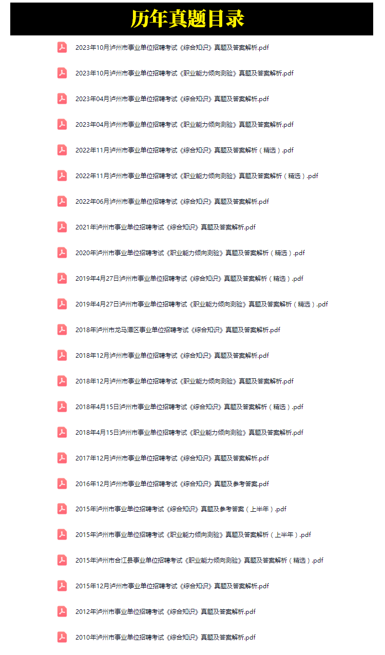 2010年-2023年泸州市事业单位招聘考试笔试真题24套