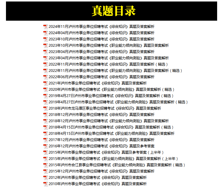2010年-2024年泸州市事业单位招聘考试笔试真题26套