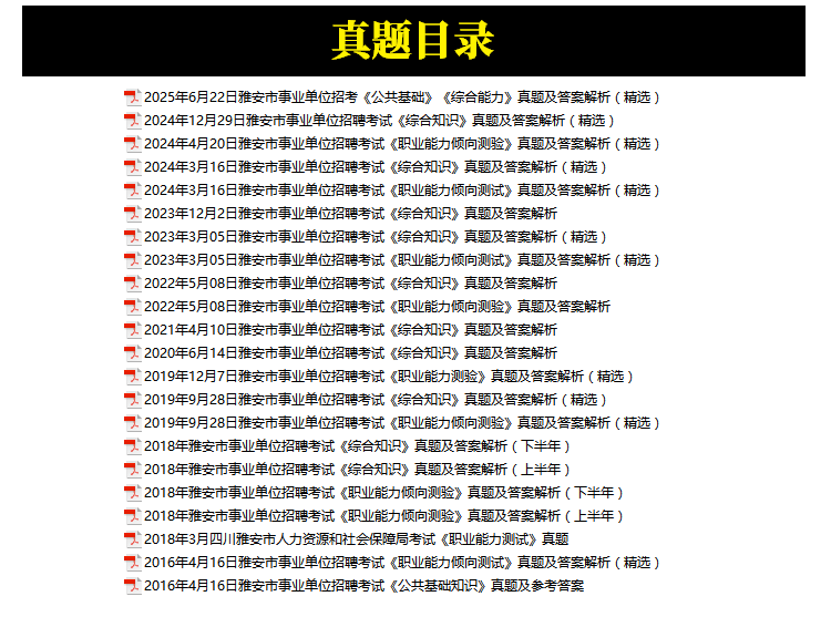 2016年-2025年雅安市事业单位招聘考试笔试真题22套