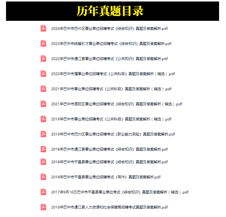 2016年-2024年巴中市事业单位招聘考试笔试历年真题12套