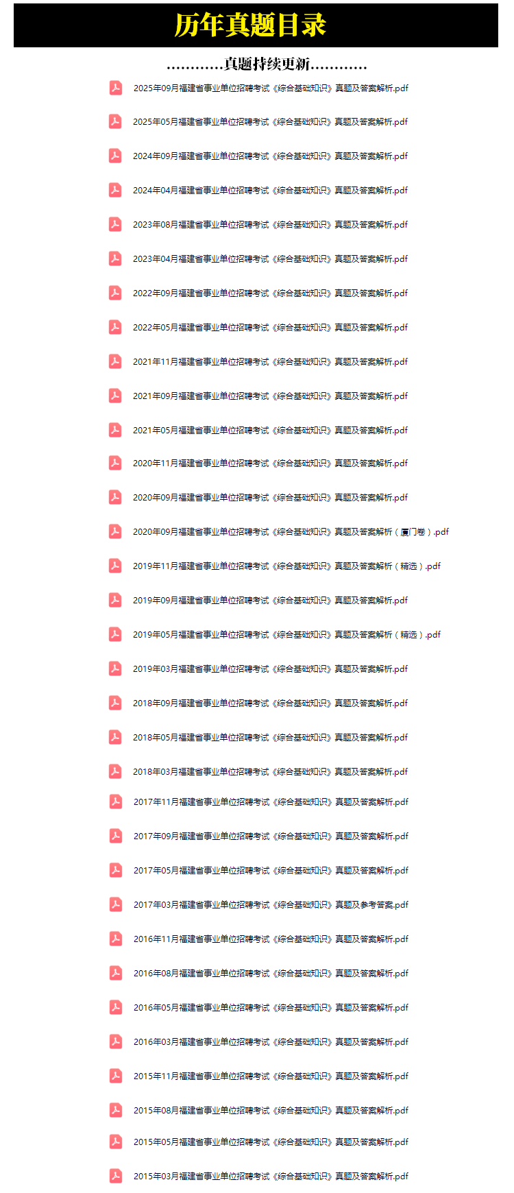 2015年-2025年福建省事业单位招聘考试笔试历年真题33套(持续更新)