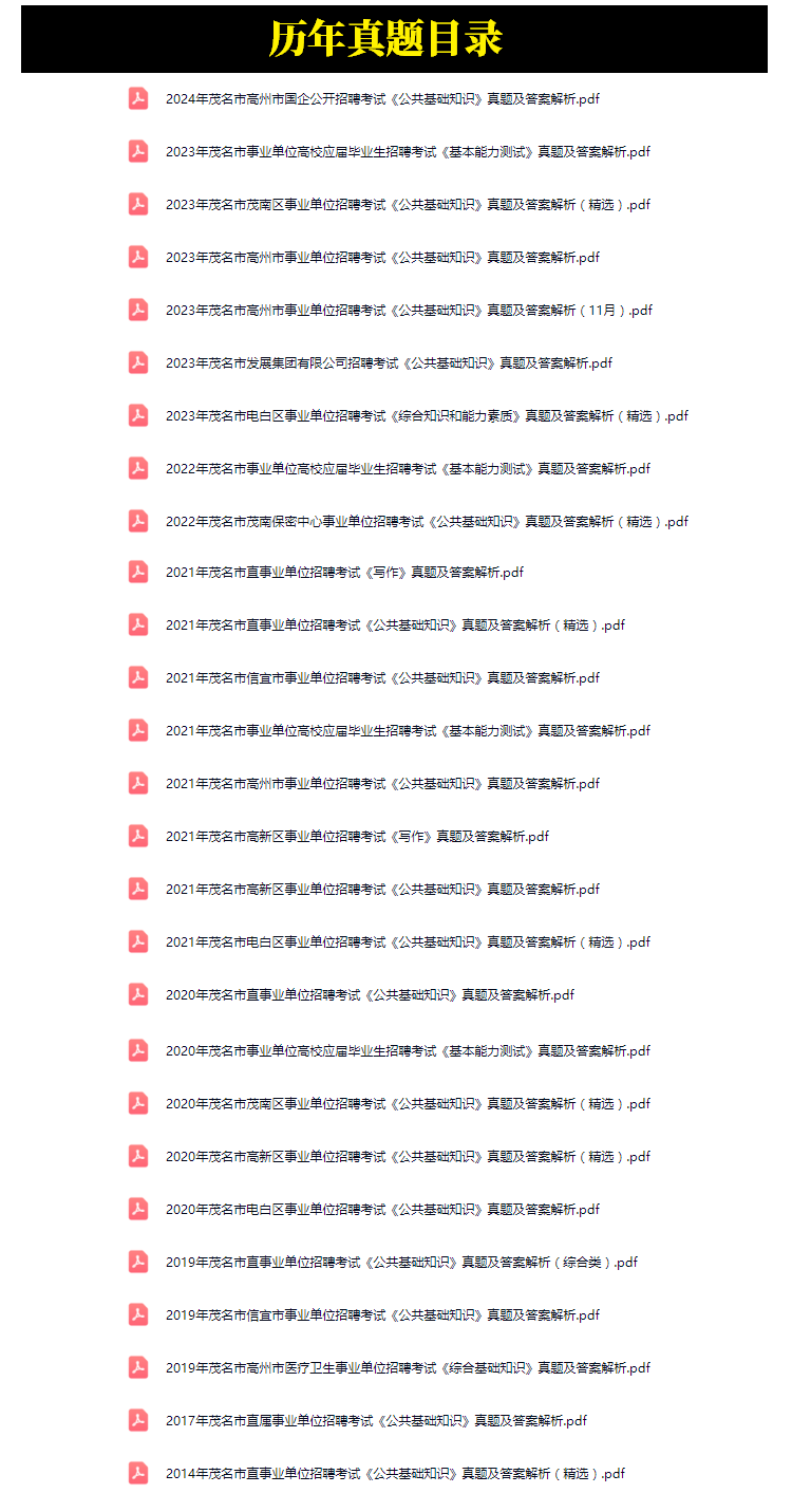 2014年-2024年茂名市事业单位招聘考试笔试真题25套