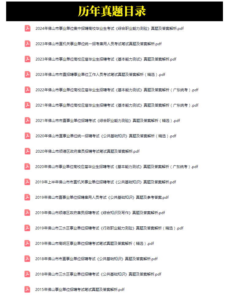 2015年-2024年佛山市事业单位招聘考试笔试真题18套