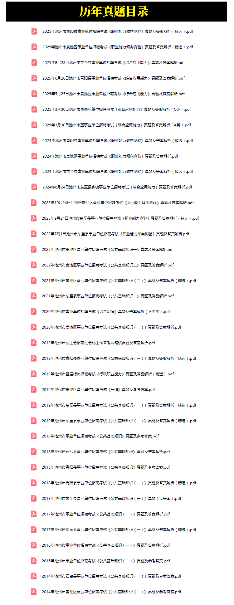 2014年-2025年池州市事业单位招聘考试笔试真题37套