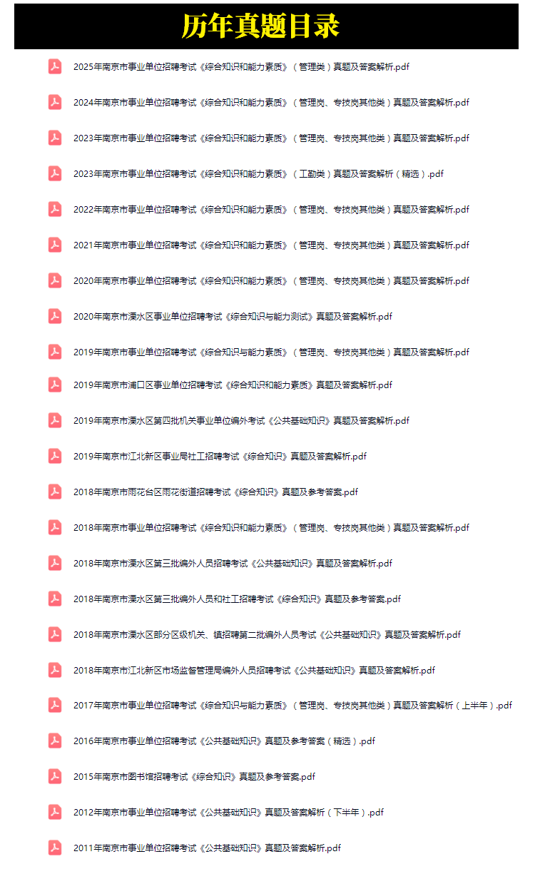 2011年-2025年南京市事业单位招聘考试笔试真题23套
