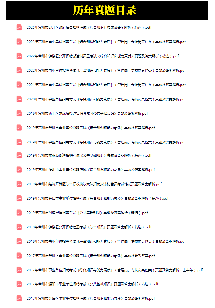 2017年-2025年常州市事业单位招聘考试笔试真题20套