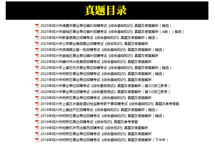 2018年-2025年绍兴市事业单位招聘考试笔试真题20套
