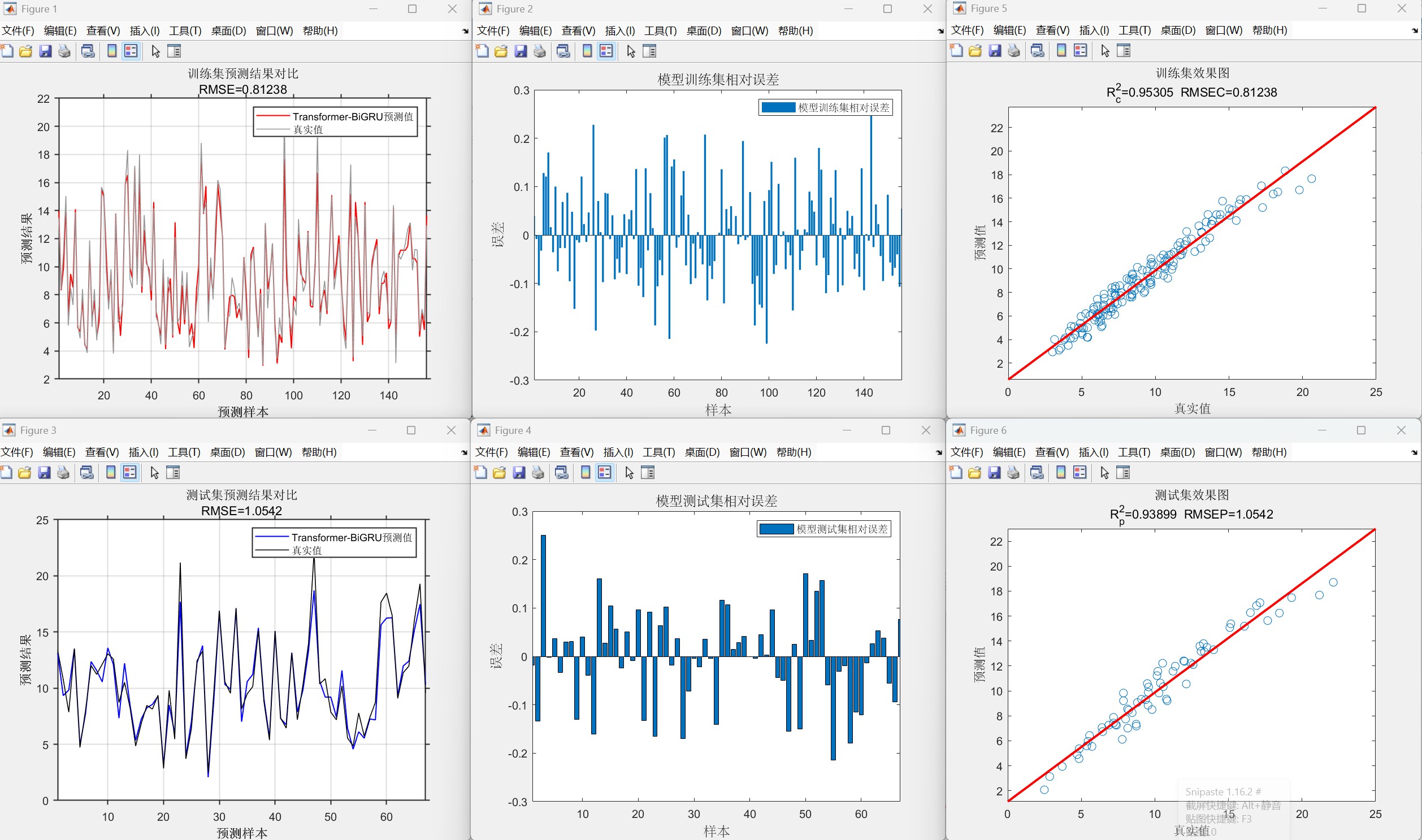- 模型构建:搭建基于Transformer-BiGRU结构,包含位置编码、自注意力机制、BiGRU层和全连接层。
