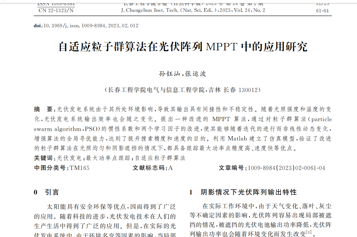 3、粒子群算法的MPPT控制,能够在局部被遮挡的情况下快速准确地跟踪最大功率点,实现光伏发电系统最大功率稳定运行。