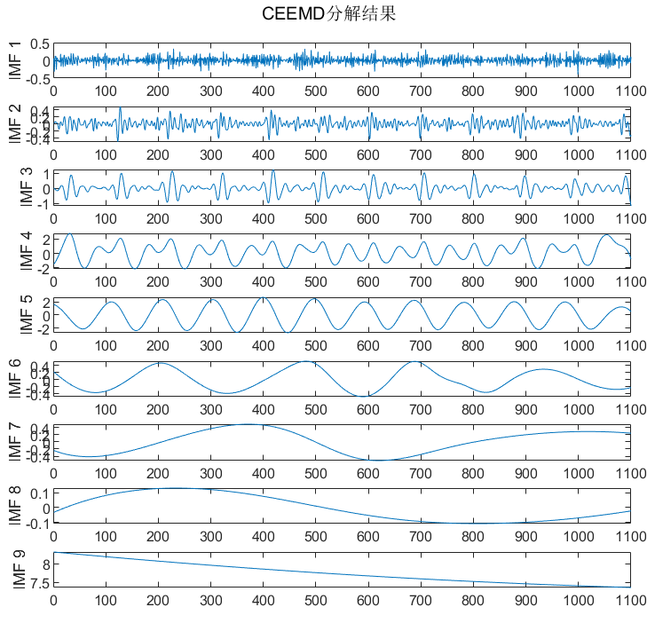 1)CEEMD分解:通过CEEMD算法将输入时间序列分解为若干IMF分量,初步降低原始时间序列的复杂度。