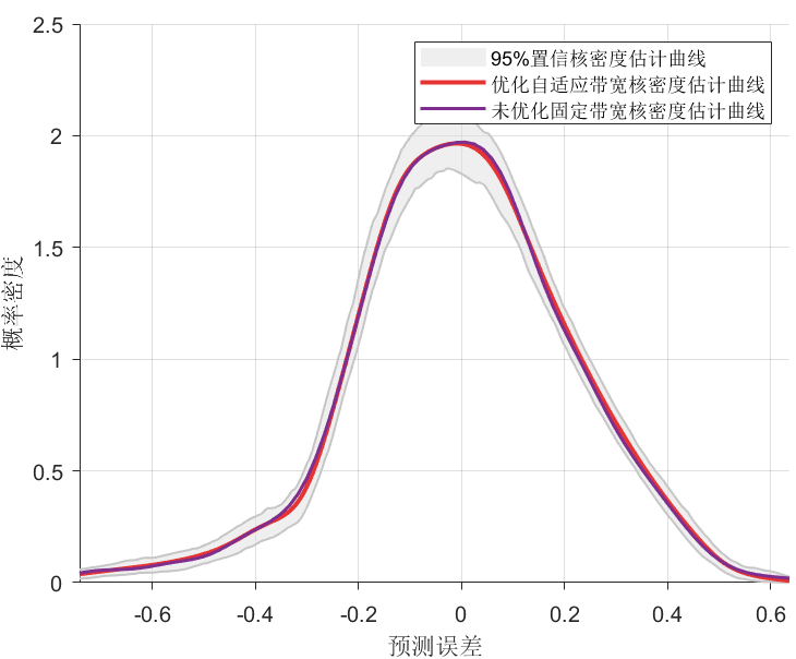 4)区间概率预测:得到训练集误差,设置置信区间 ,进行自适应带宽核密度估计。