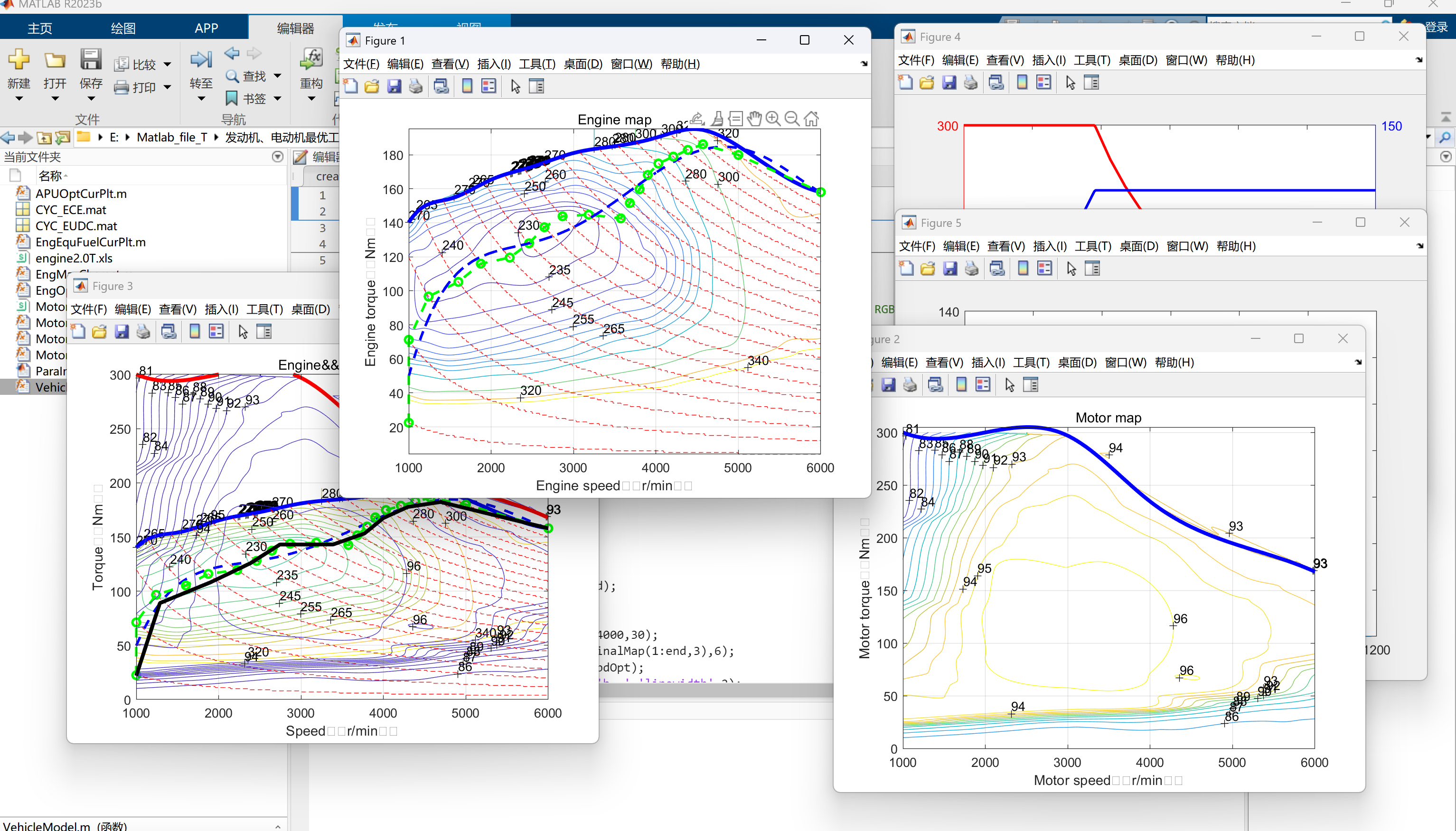 发动机、电动机组最优工作曲线计算Matlab程序、最优效率+MAP图、外特性曲线