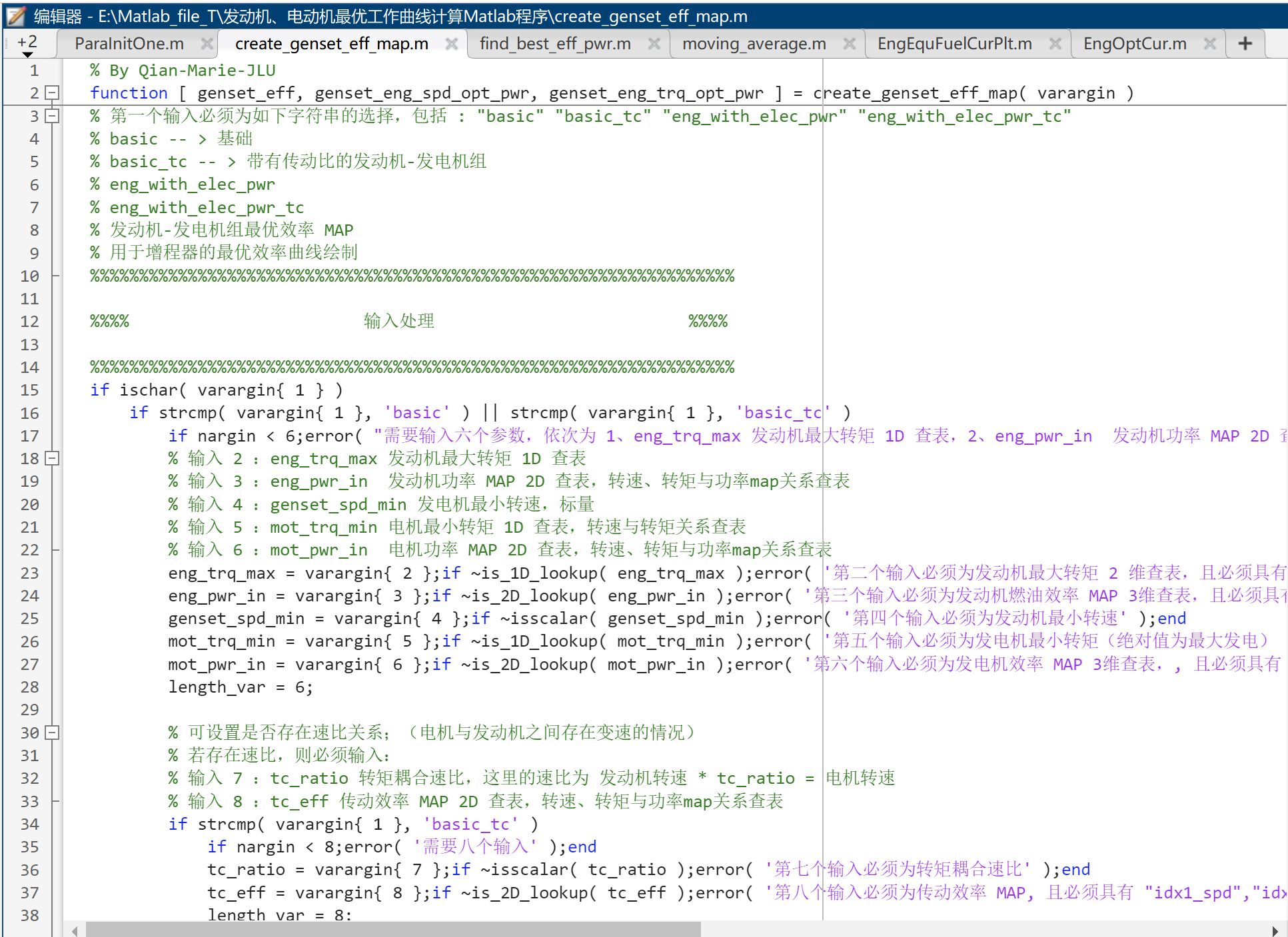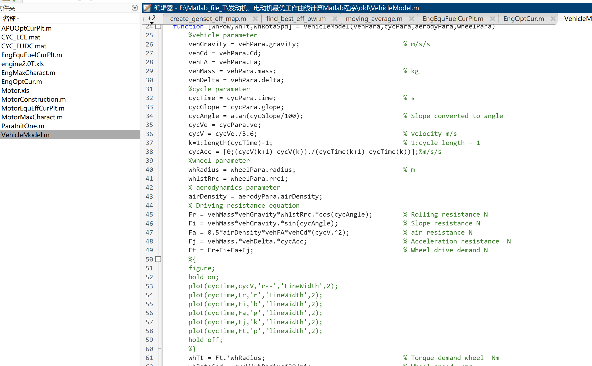 ①发动机最优工作曲线计算程序m文件;