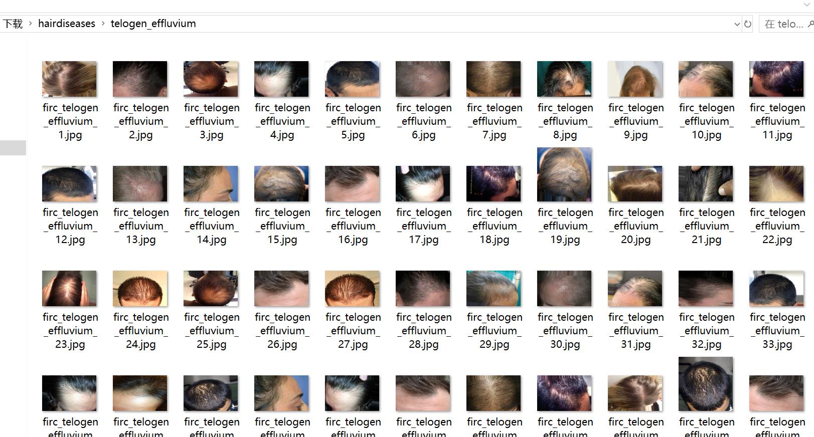 类别名称:["alopecia_areata","contact_dermatitis","folliculitis","head_lice","lichen_planus","male_pattern_baldness","psoriasis","seborrheic_dermatitis","telogen_effluvium","tinea_capitis"]