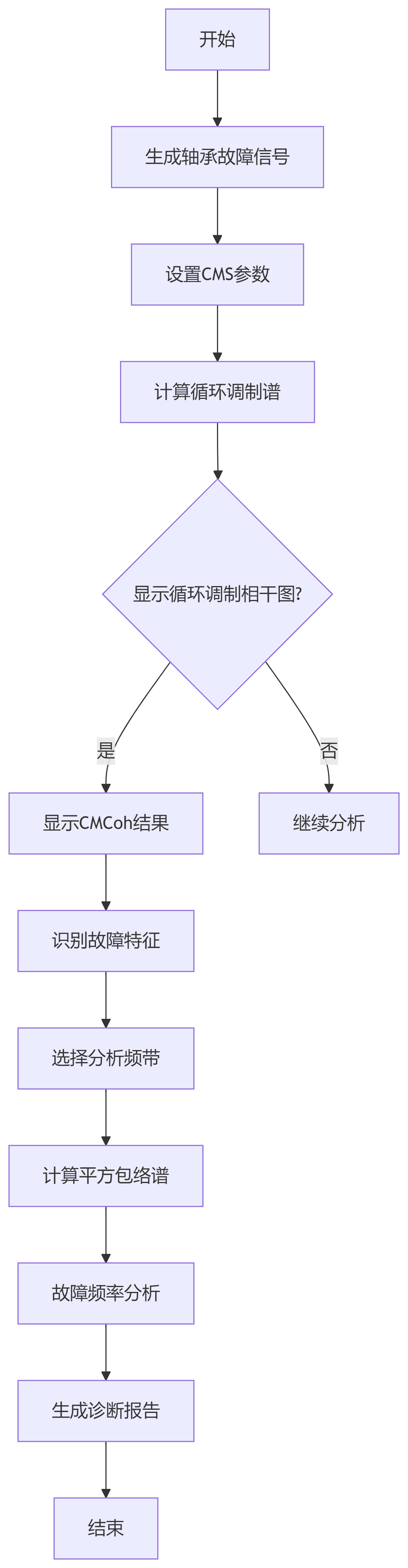 代码实现了一个完整的循环调制谱轴承故障诊断系统,主要用于检测旋转机械(特别是轴承)中的周期性故障。