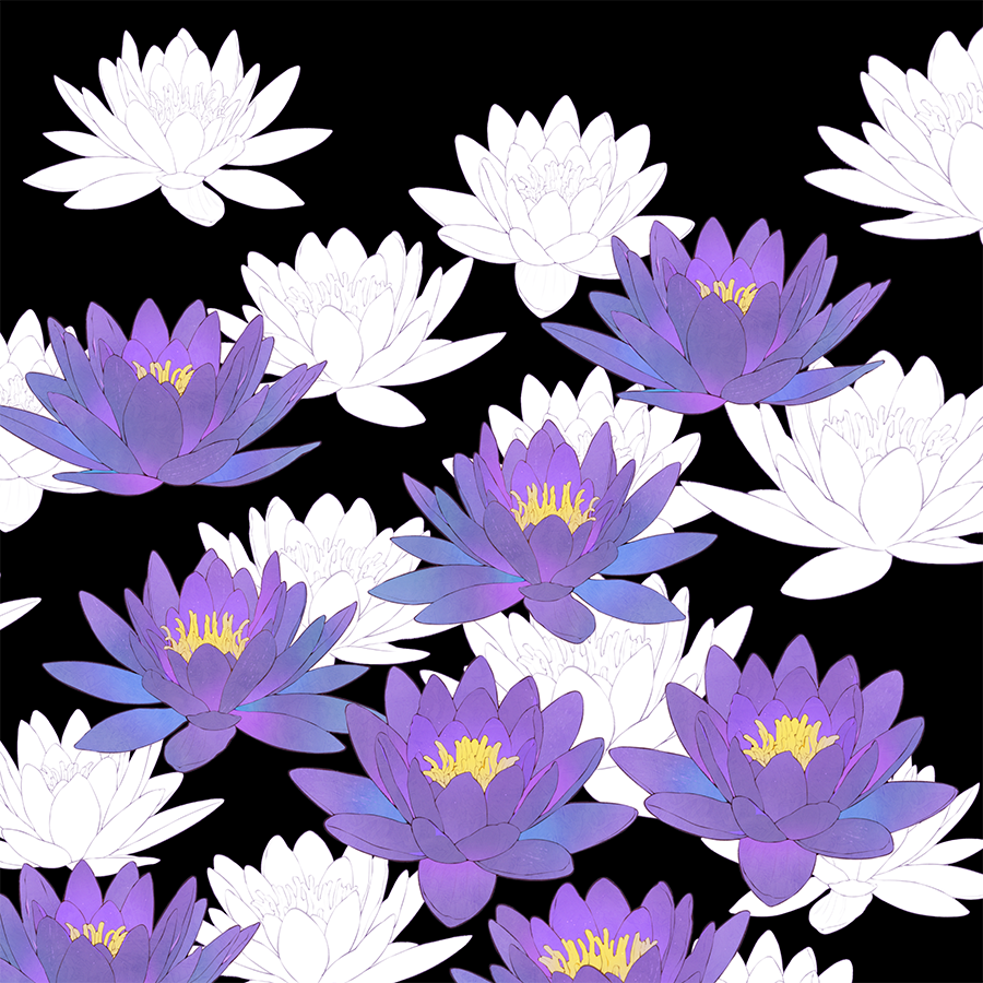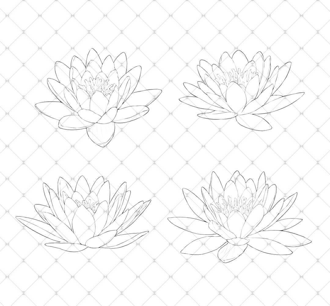 睡莲莲花 上色线稿组合笔刷,上色版 + 可改色线稿版