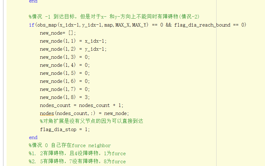 (4)节点扩展优化控制,消除A*算法中的对称路径冗余,水平/垂直方向直达障碍物或目标点,对角线方向综合判断x、y方向的可行性