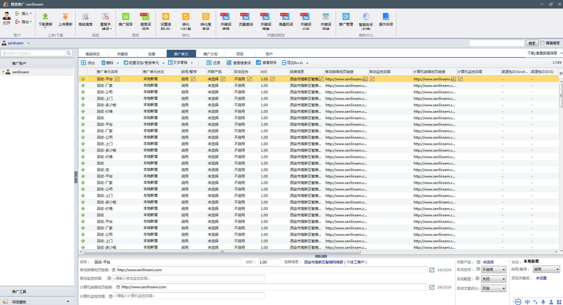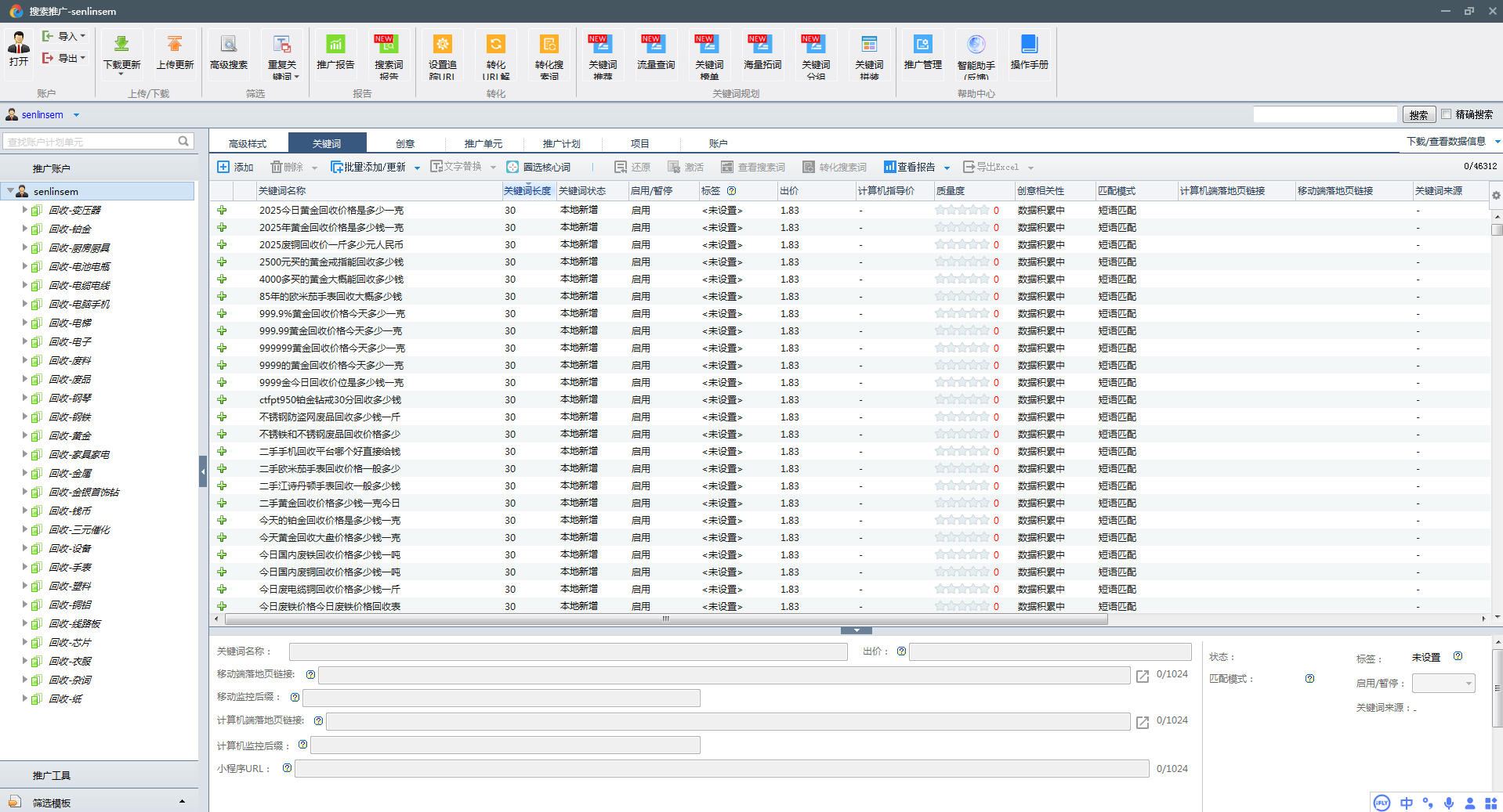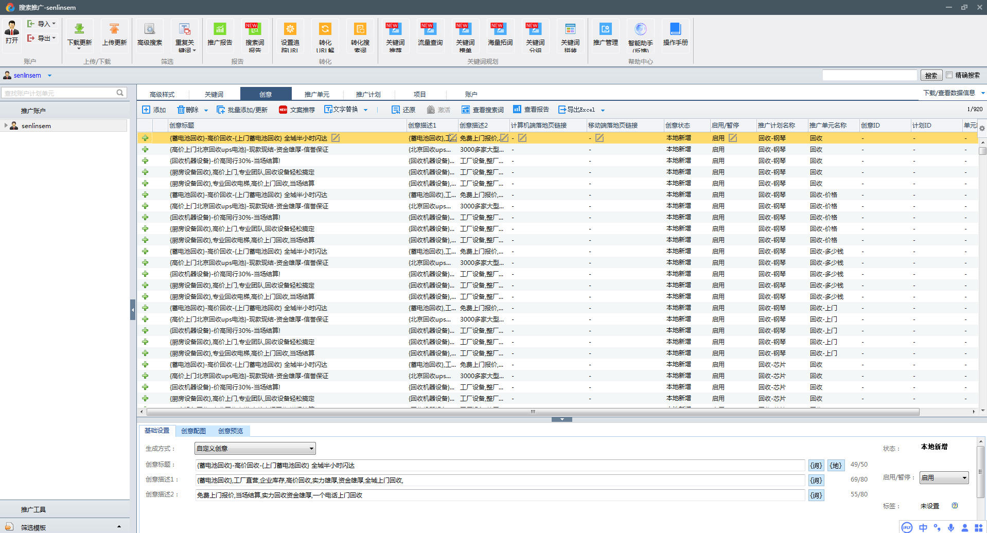 回收行业百度推广账户备份文