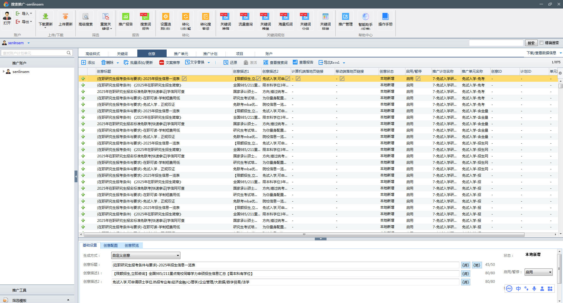 19487在职研究生招生百度推广账户备份文