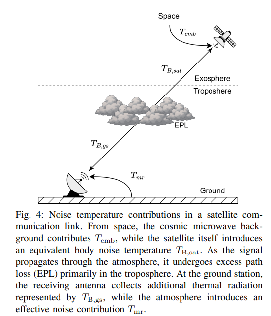 全文结构如下:第二部分介绍链路预算分析的基本原理;第三部分阐述如何对实测气象数据进行插值,以匹配卫星轨道轨迹与 EPL 计算的分辨率;第四部分介绍总系统噪声的建模方法,包括电子设备内部噪声、天线噪声及传播信道噪声的贡献;第五部分概述基于信道特性的自适应编码调制实现方式;第六部分展示两个卫星过境场景下的 ACM 性能结果。