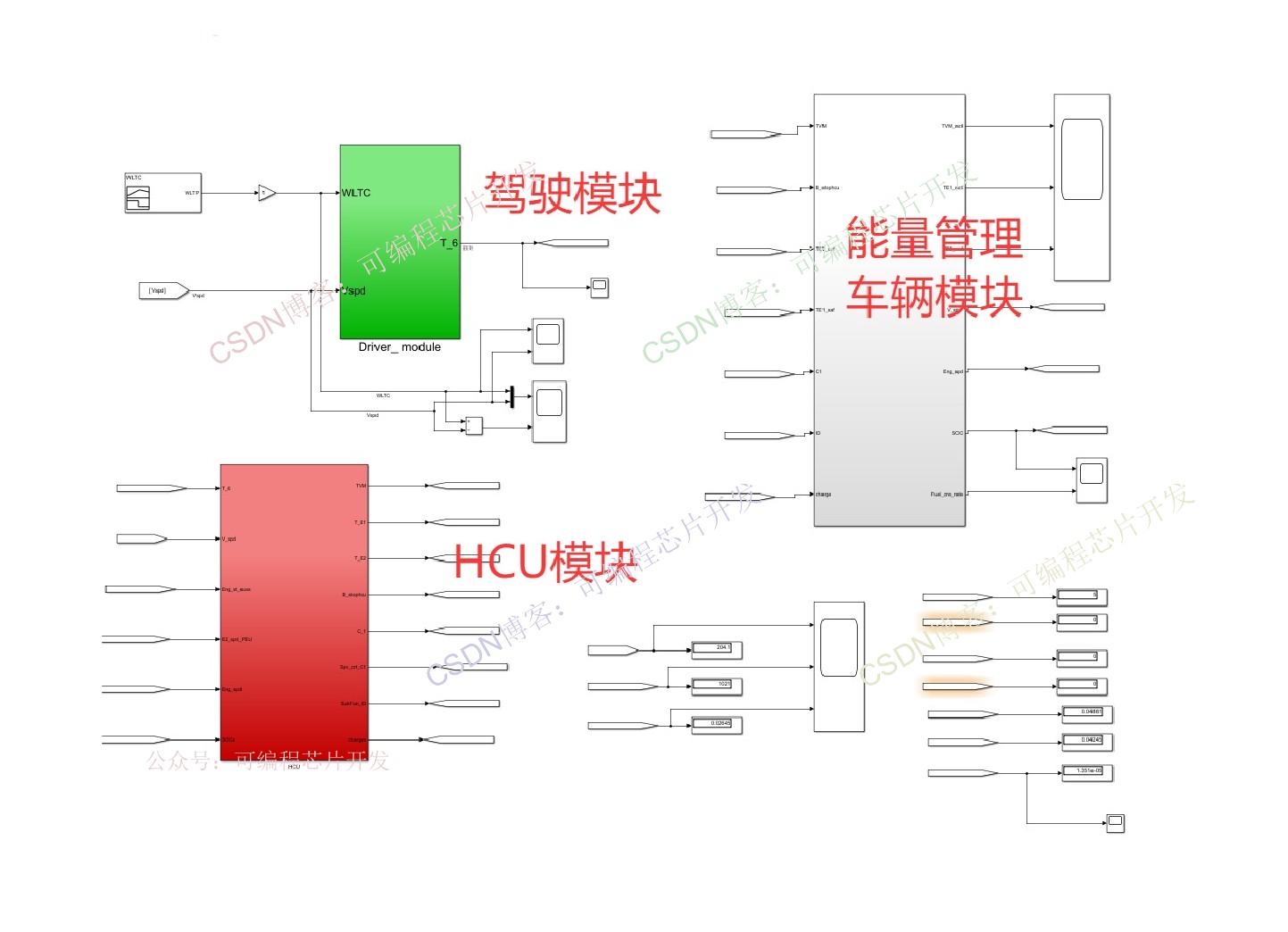 混动汽车模型以“驾驶员需求-能量分配-整车执行-闭环反馈”为核心逻辑,整合驾驶员模型、HCU能量管理、整车物理模型三大模块,最终实现WLTP目标车速跟踪与能耗(油耗+电耗)优化。核心目标包括通过3种基础模式(启动、纯电驱动、混合驱动)及充电模式切换,使实际车速匹配WLTP工况。