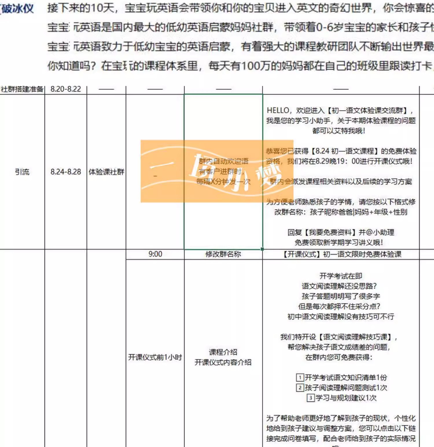 教育社群活动裂变转化运营预热话术标准操作流程SOP文档线上线下