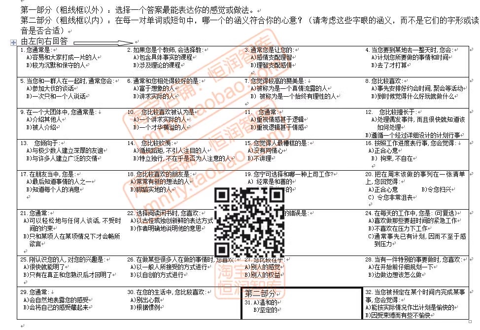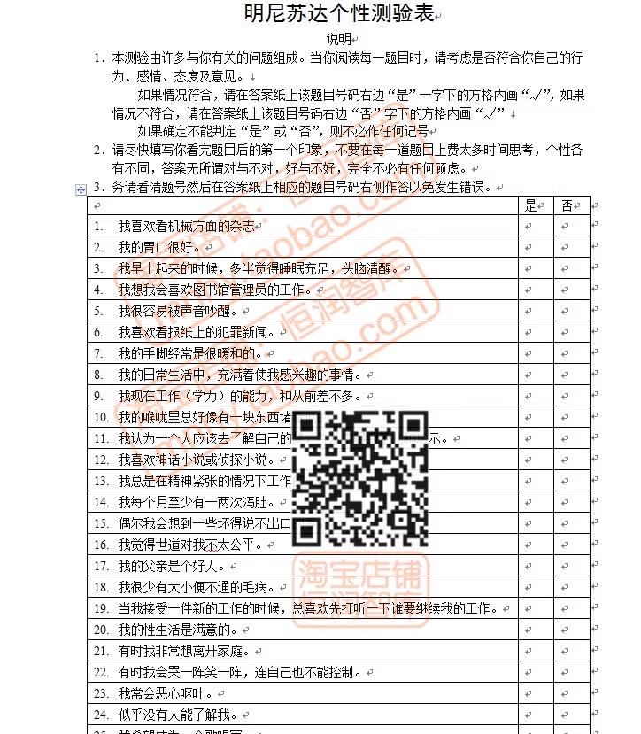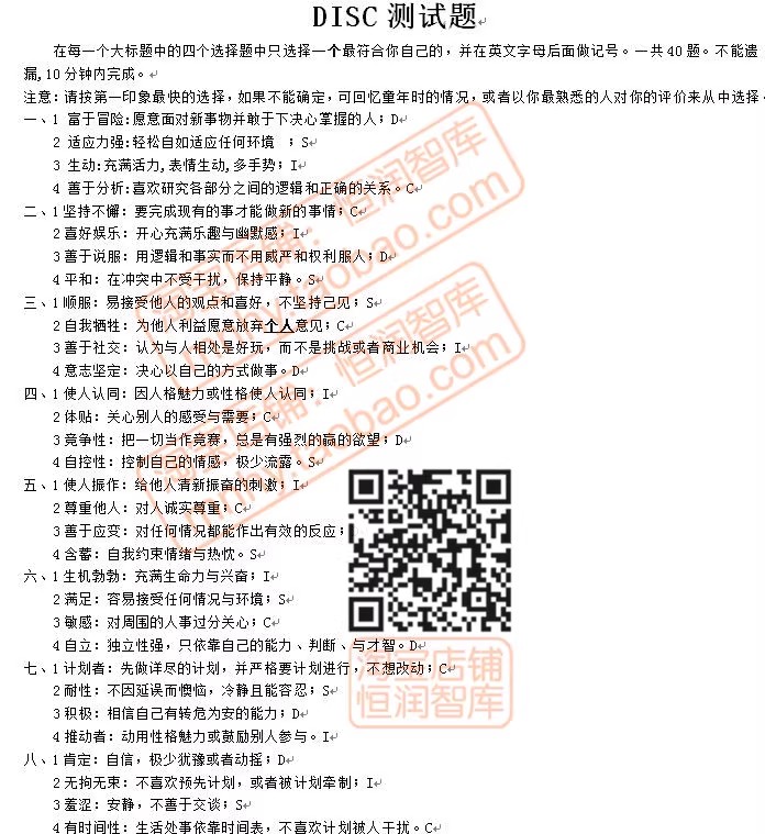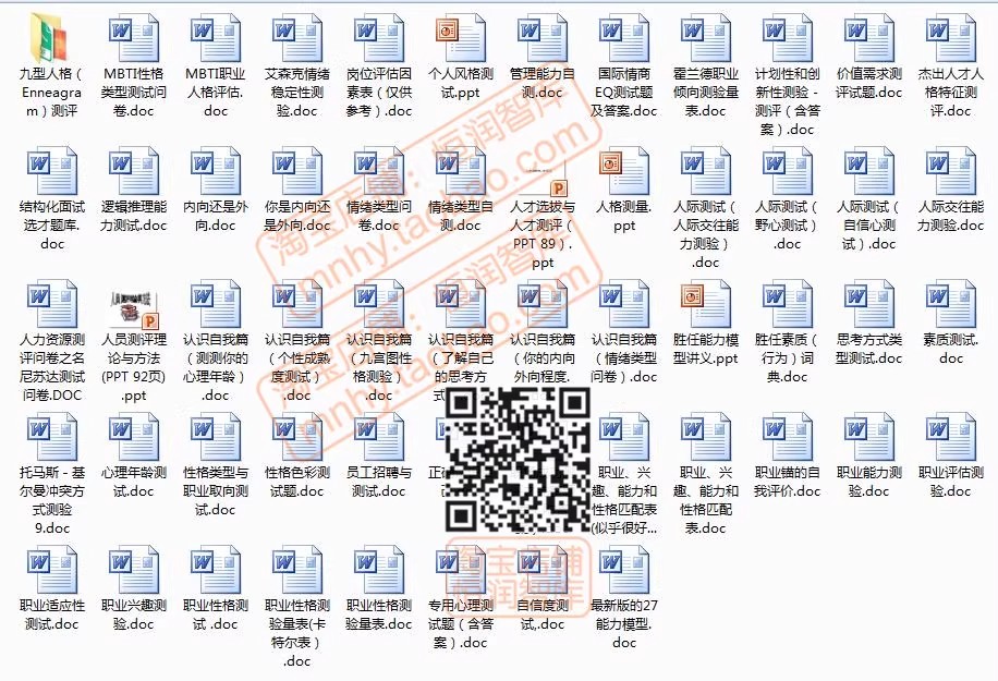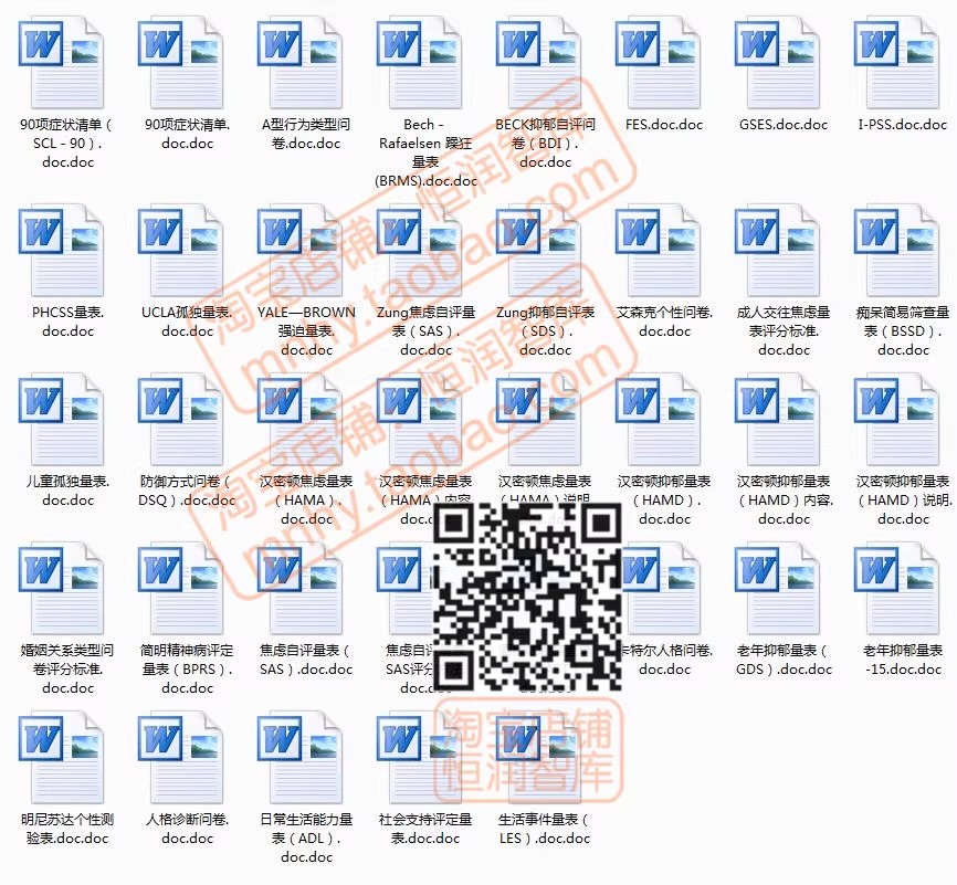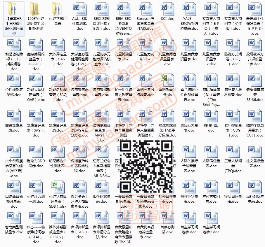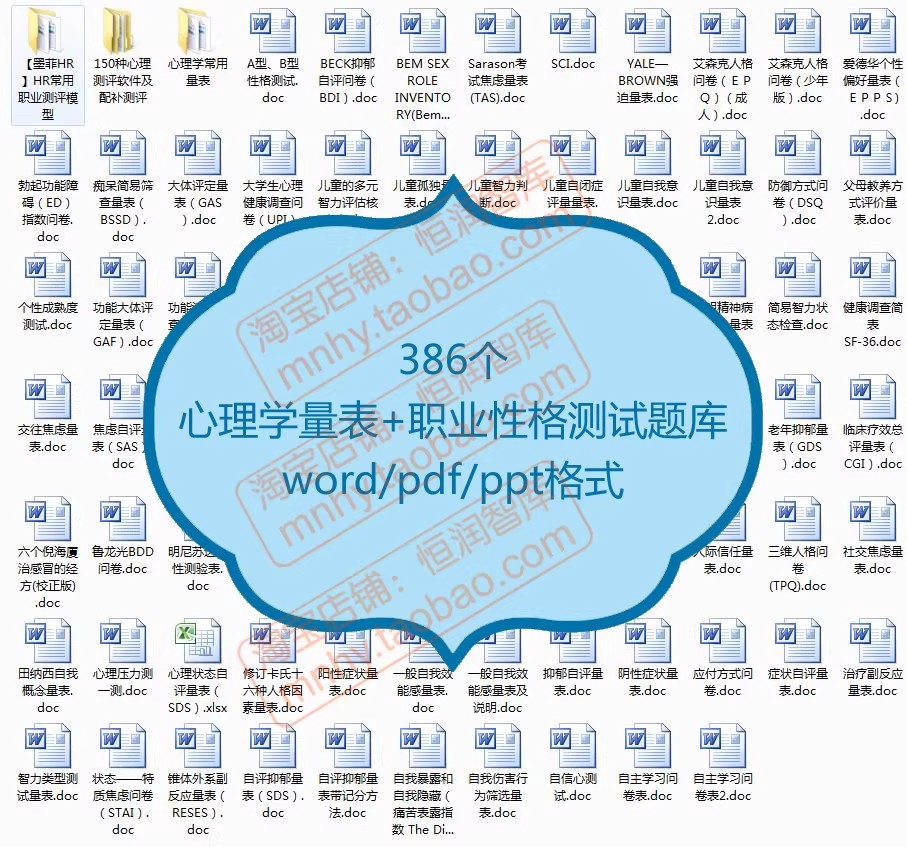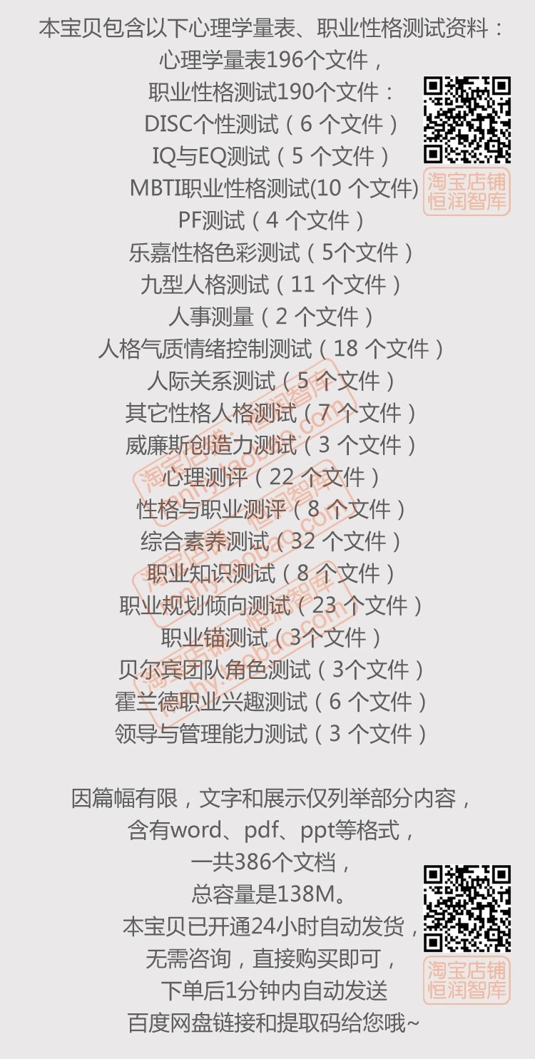 心理学测试题库word量表职业性格测评抑郁自评EQ焦虑DISC评估HR