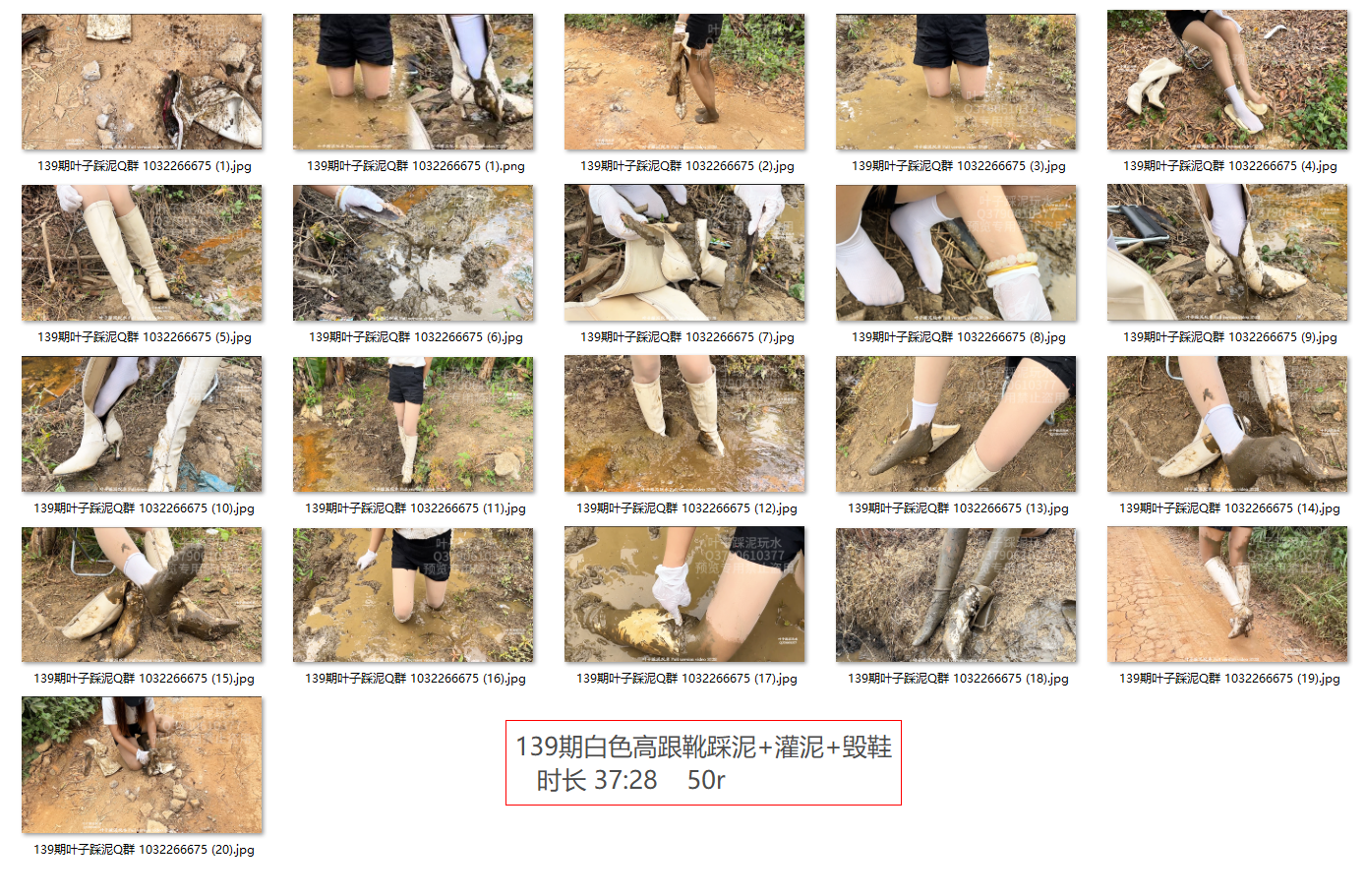 139期白色高跟靴踩泥+灌泥+毁鞋