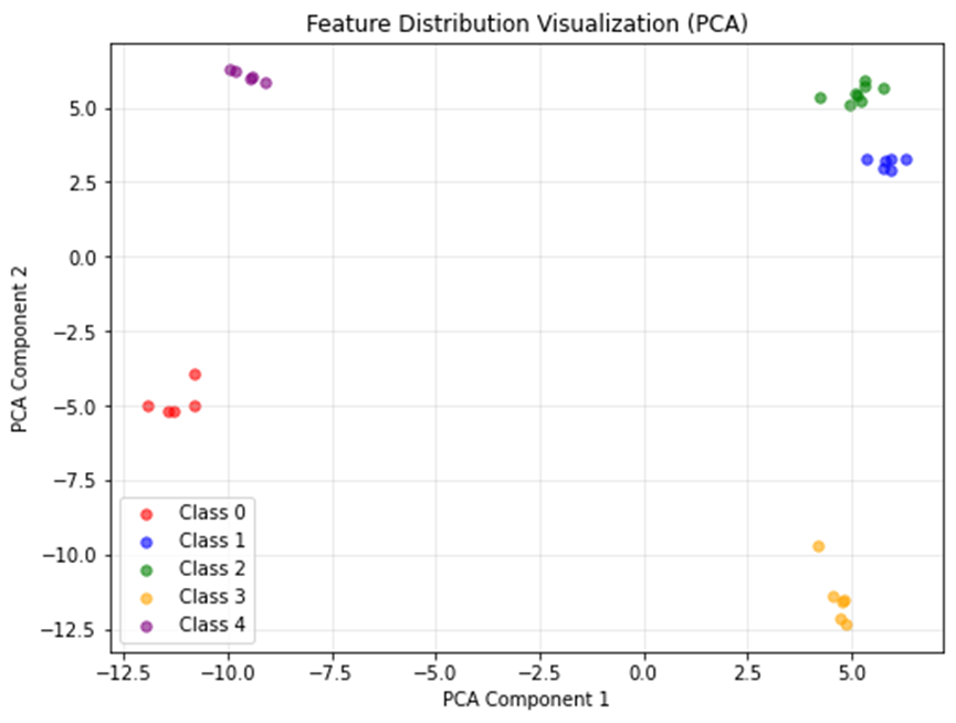 基于5种故障类型(正常打印、飞溅故障、打印过慢、表面粗糙、功率过大)的物理特性,模拟生成多通道声发射信号和对应的物理参数,确保不同故障类别在频率、振幅和时域特征上具有可区分的模式。物理参数根据故障机理进行相应调整,为后续物理信息融合提供基础。