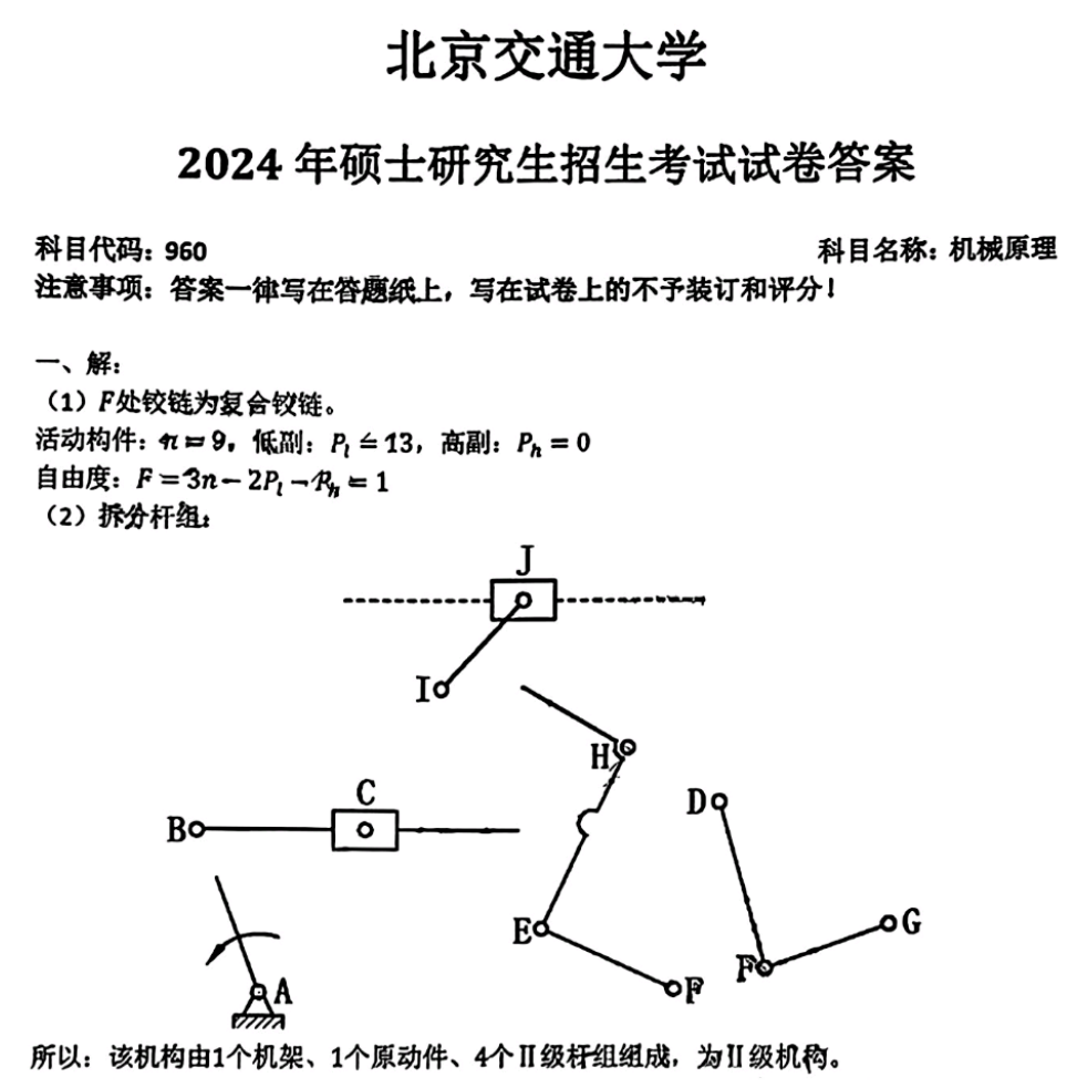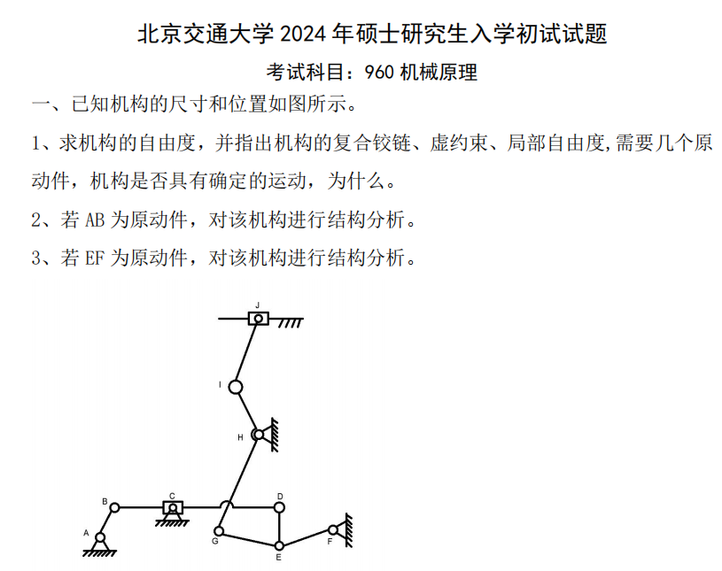 北京交通大学960机械原理2001-2025年真题及答案