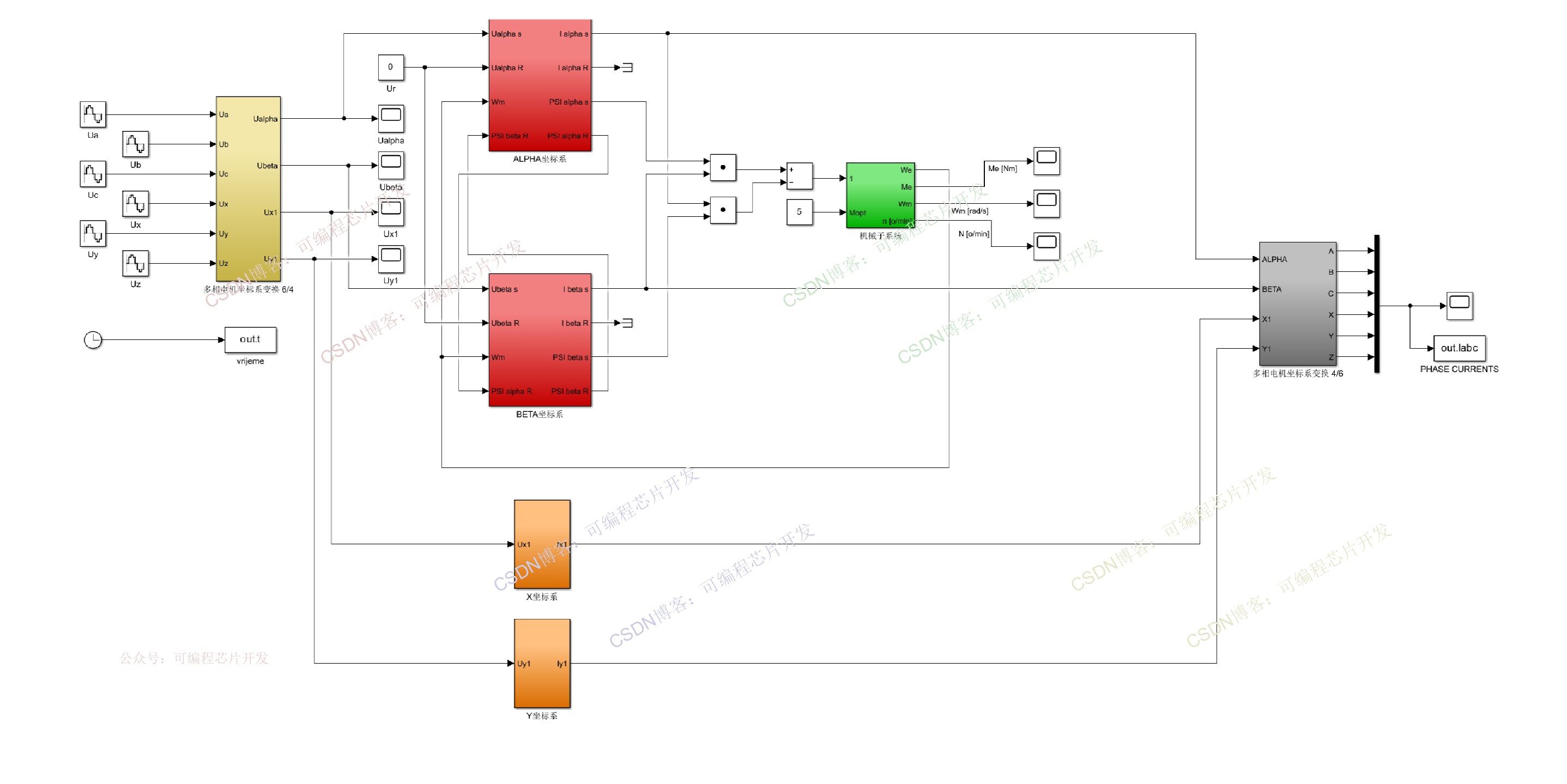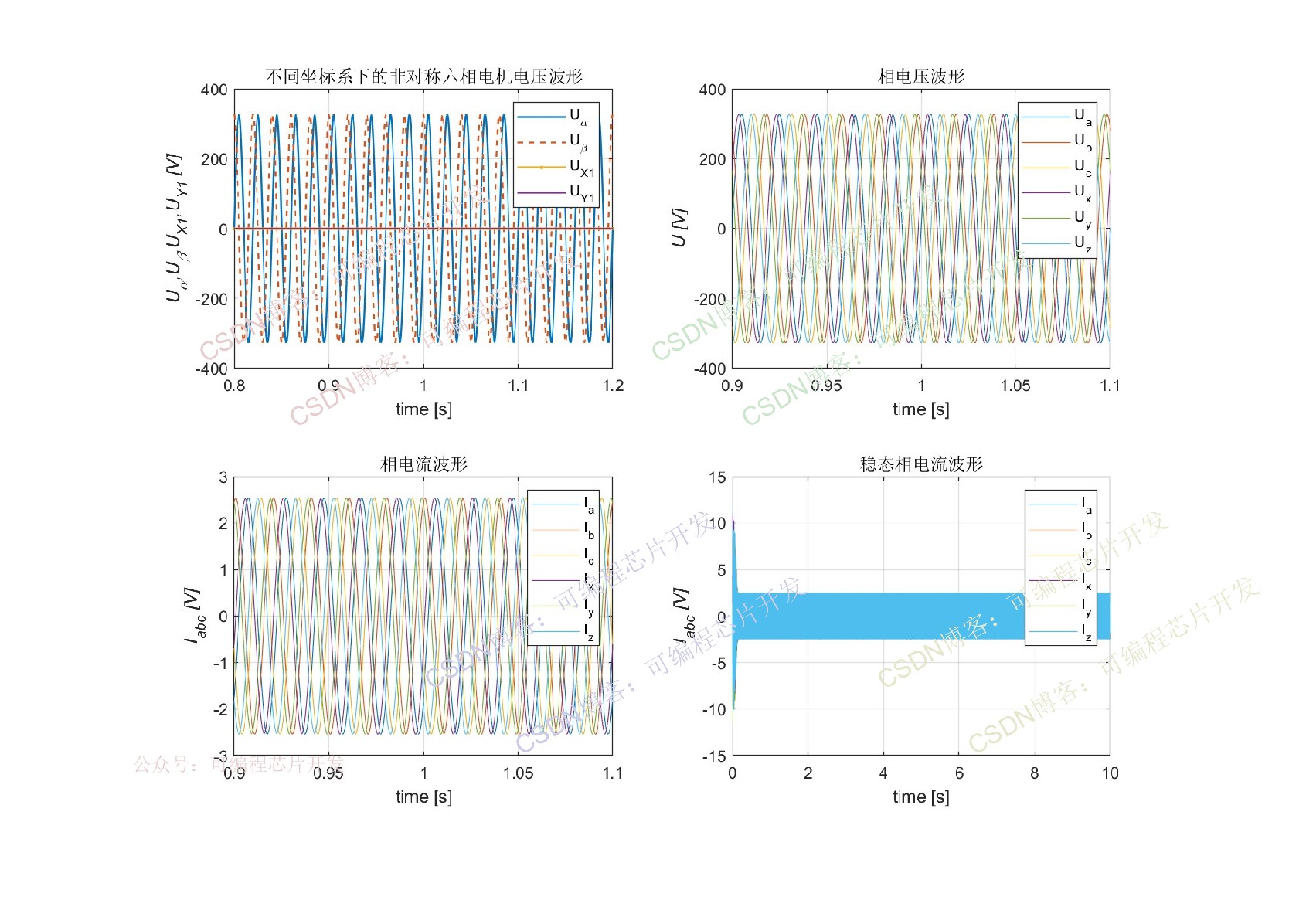 非对称六相电机是多相电机的典型代表,相较于传统三相电机,其具备功率密度高、容错能力强、转矩脉动小等优势,在电动汽车、船舶推进、航空航天等大功率、高可靠性领域具有广泛应用前景。对非对称六相电机的分析需基于静止坐标系(如自然坐标系、αβ坐标系)和正交旋转坐标系(如dq坐标系)的坐标变换,通过坐标变换可将复杂的多变量耦合系统解耦为独立的子系统,简化电机的建模与控制。