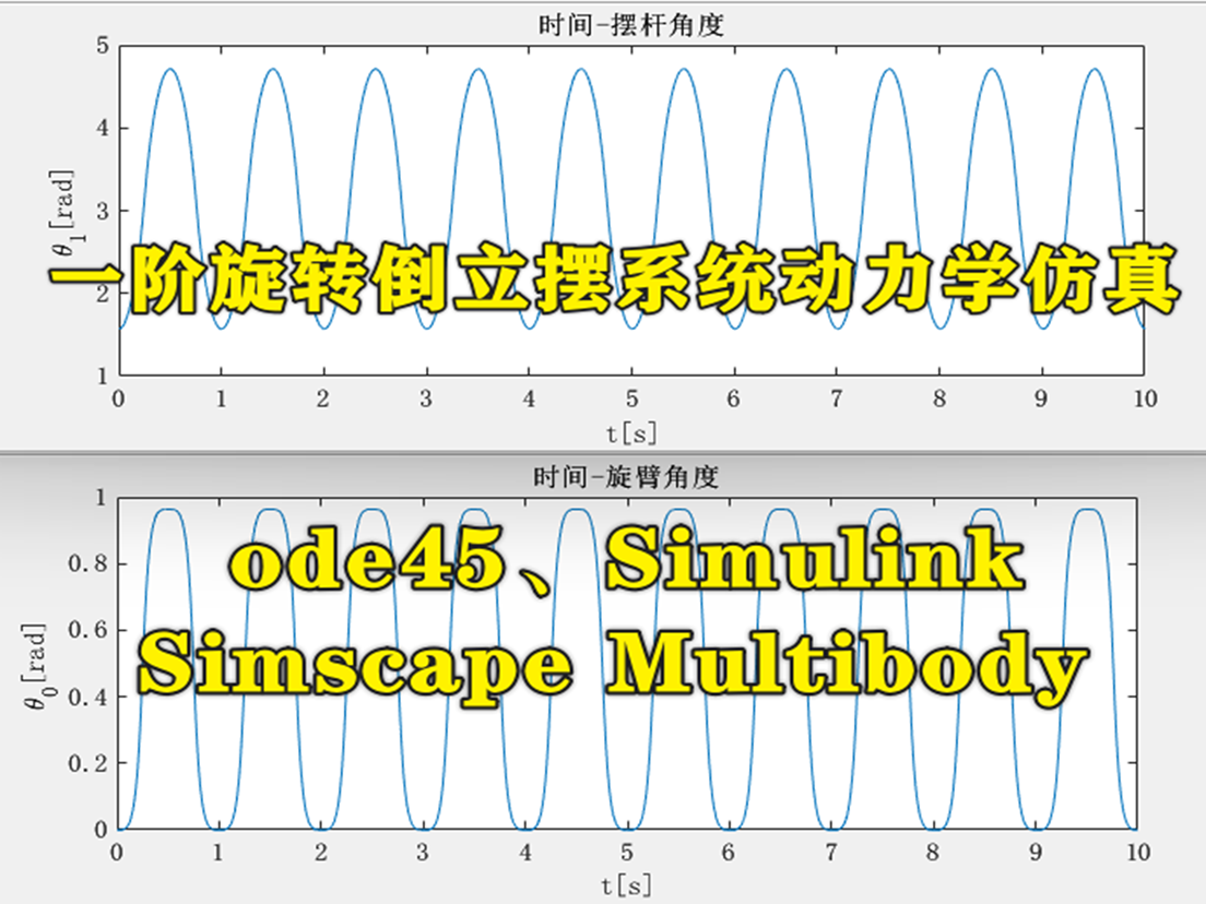 基于Matlab的一阶旋转倒立摆系统动力学仿真,通过三种方法:ode45、Simulink 及 Simscape Multibody分析了倒立摆的摆杆和旋臂随时间变化曲线,可定义总臂长、支点到摆锤质心的距离、质量等相关参数。程序已调通,可直接运行。