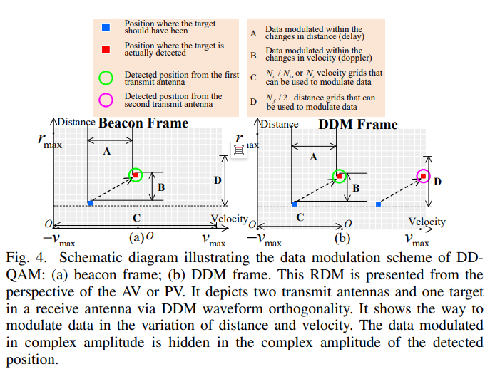 本文聚焦于提升毫米波频段感知中心型自动驾驶车辆的通信功能,主要贡献体现在三个方面:一是波形设计上,提出基于DD-QAM的啁啾波形,实现延迟、多普勒和复振幅维度的高效数据调制;二是感知层面,提出信标帧辅助的4D参数估计方案,实现延迟和多普勒的准离格估计,同时基于EKF的5D参数估计方案支持动态离格估计,并能额外获取切向速度和方位角信息;三是通信层面,为被动车辆设计双补偿解调与跟踪方案,利用时间序列信息在不影响感知功能的前提下完成数据解调。