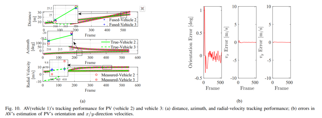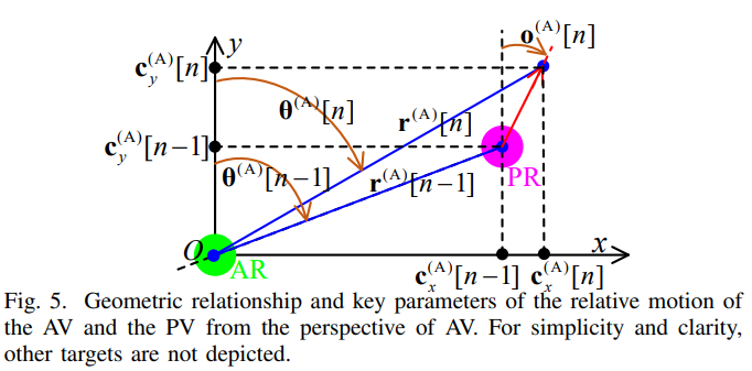 - 主动车辆:提出基于EKF的5D参数估计方案,将传统4D参数(距离、径向速度、方位角、仰角)与切向速度结合,通过融合历史先验信息与当前观测值,提升参数估计精度并获取目标方位角。