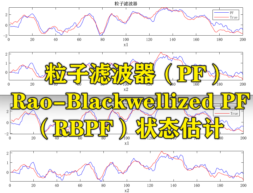 基于Matlab的粒子滤波器(PF)和 Rao-Blackwellized 粒子滤波器(RBPF)状态估计。程序通过 Monte Carlo 模拟生成多个样本路径,并使用 PF 和 RBPF 对每个样本路径进行状态估计。最终,程序通过可视化和 RMSE 计算,比较了 PF 和 RBPF 的性能。粒子过滤器相当易于实现和调整,但其主要缺点是它的计算机密集型非常密集,随着状态维度的计算复杂性迅速增加。解决这个问题的一种补救措施是使在动力学中线性出现的状态边缘化。程序已调通,可直接运行。