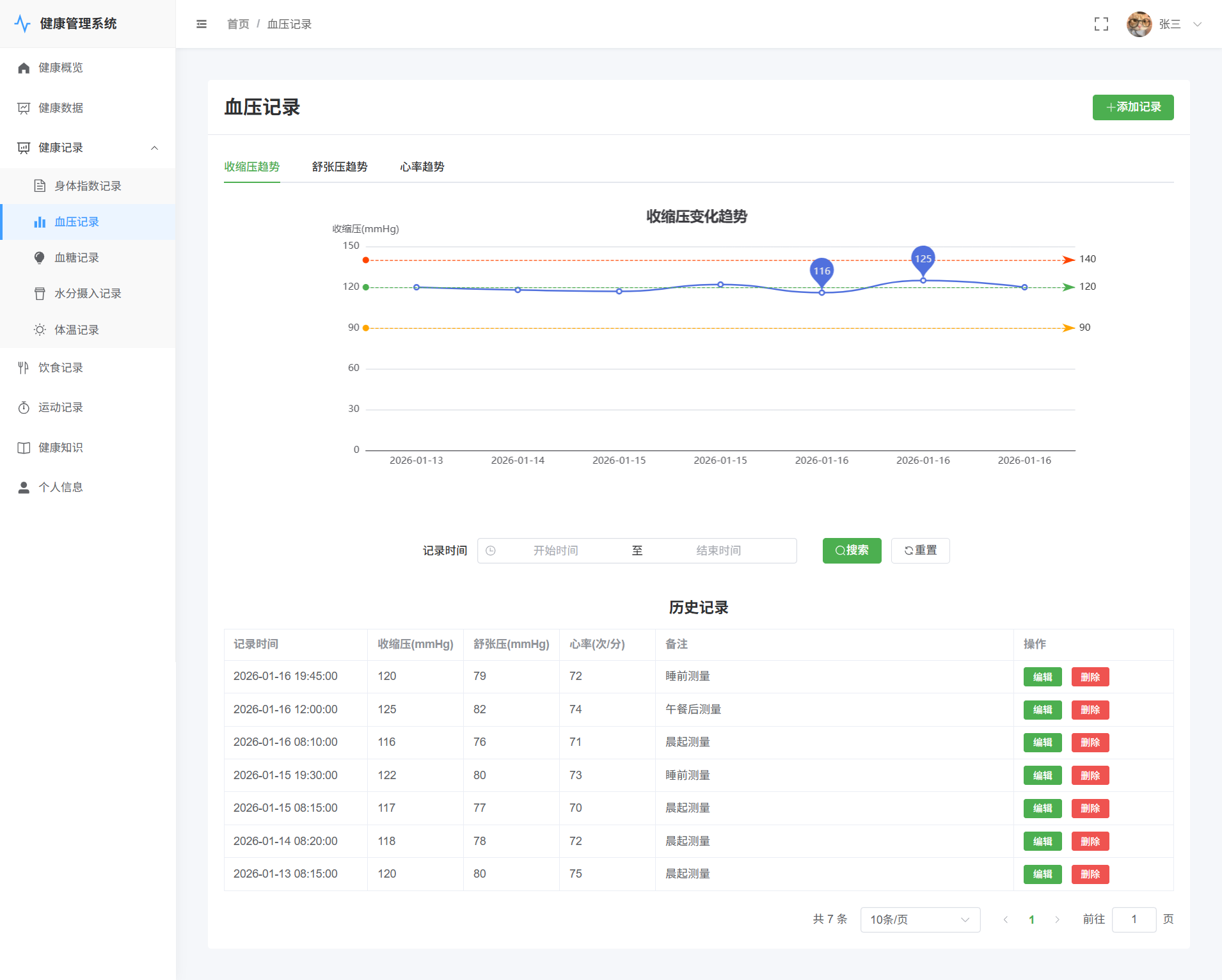 用户->血压记录