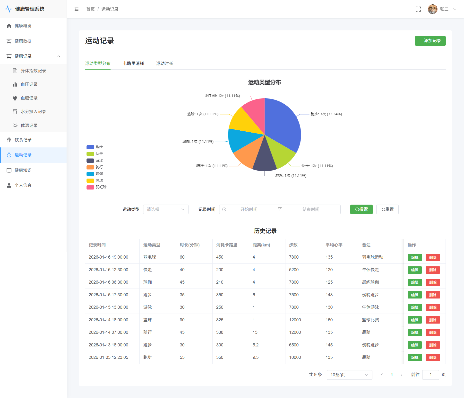 用户->运动记录