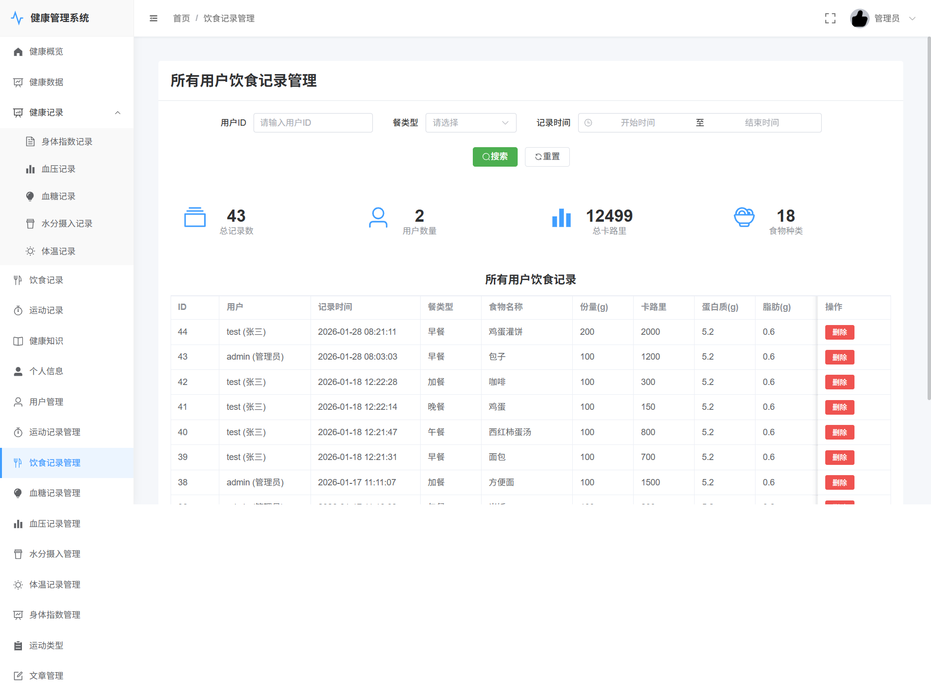 管理员->饮食记录管理